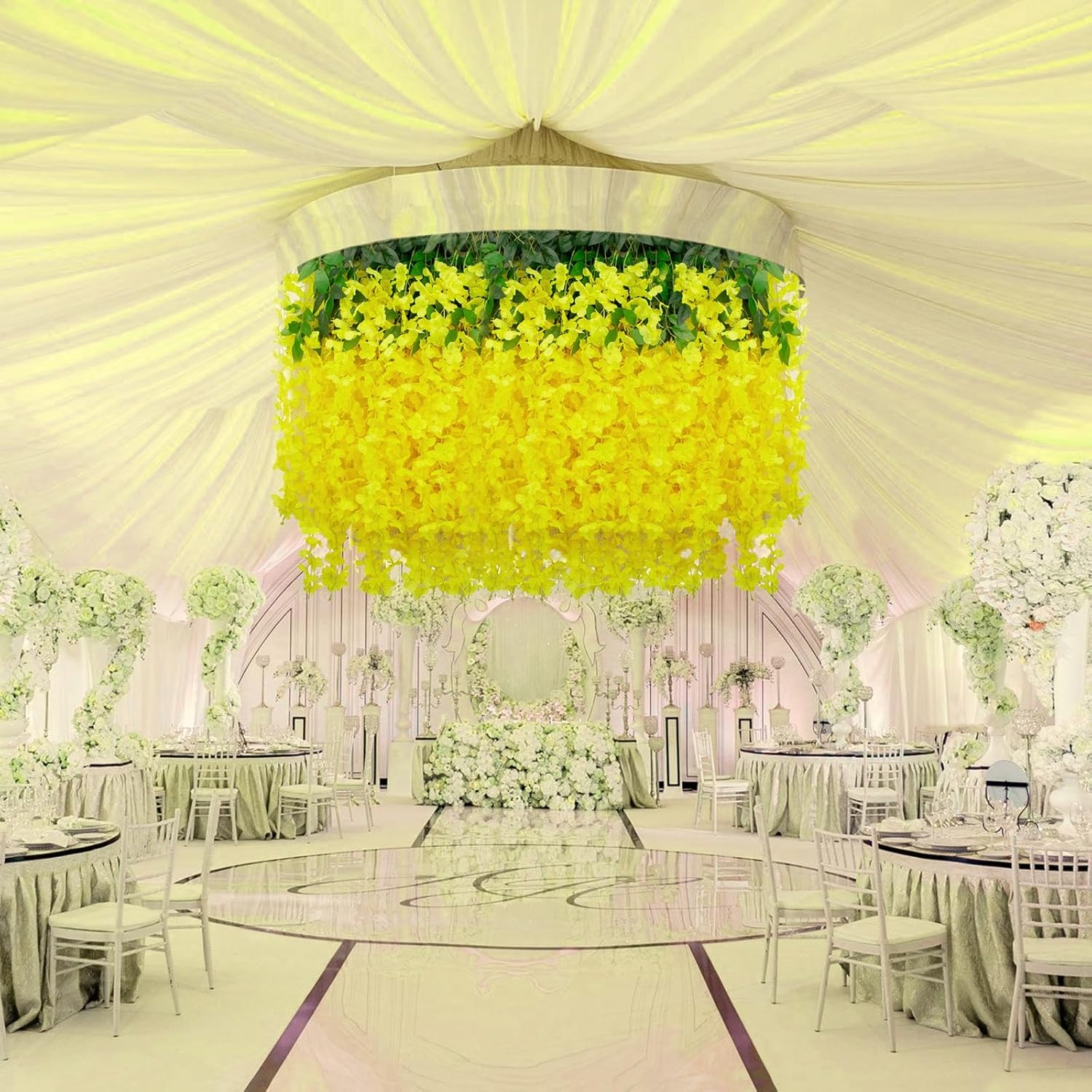 • 【Yellow Wisteria Garland】Whether you decorate beautiful yellow wisteria hanging flowers indoors or outdoors, you can achieve a magical decorative effect. Decorating the interior makes your home look full of life while decorating the exterior makes the environment more springy.