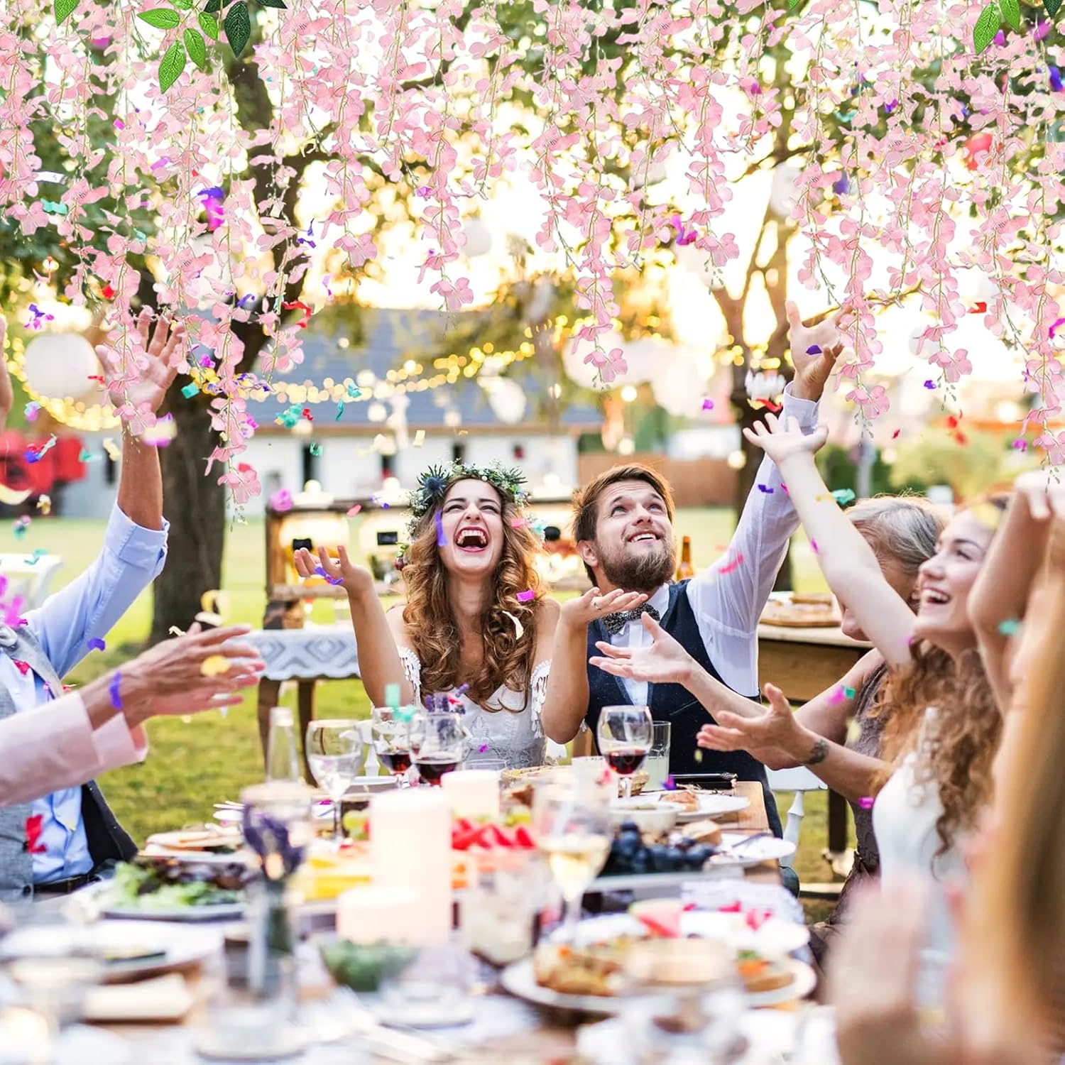 • 【Light Pink Wisteria Garland】Whether you decorate beautiful light pink wisteria hanging flowers indoors or outdoors, you can achieve a magical decorative effect. Decorating the interior makes your home look full of life while decorating the exterior makes the environment more springy.