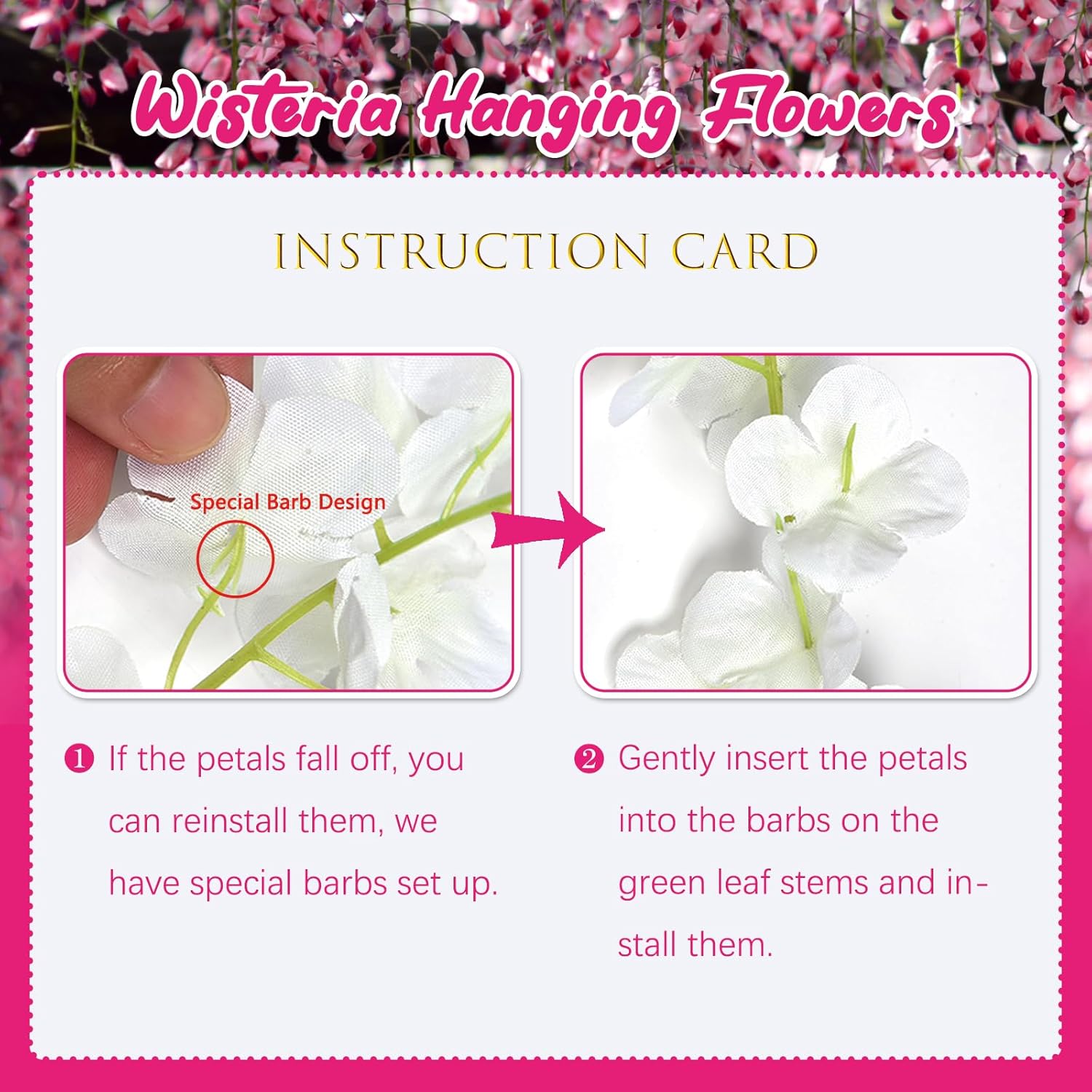 • 【Easy to Install】The fuchsia wisteria flower vines stem are made of durable metal wire and covered with plastic. You can bend the wisteria flower in any shape to satisfy your decoration imagination without damaging it. And the wisteria flower is very easy to install and remove, you can reduce a lot of troubles on installation.