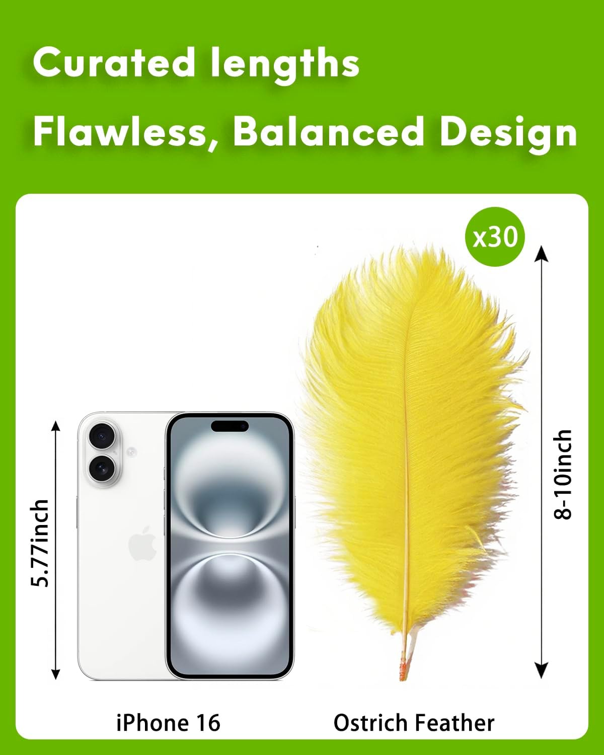 NEWONG 30pcs Yellow Ostrich Feathers Natural Bulk 8-10in(20-25cm) Vase Craft Wedding Home Party Centerpieces Christmas Day Decoration