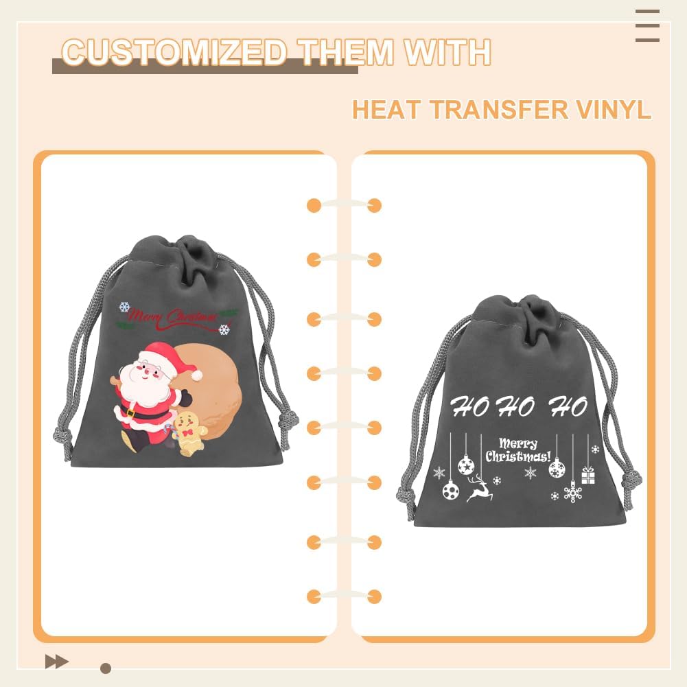 • Customizable Design: You can customize the velvet drawstring bags with heat transfer vinyl, making them perfect for client gift bags. Iron your brand logo onto the bag to help foster business recognition and increase brand awareness.
