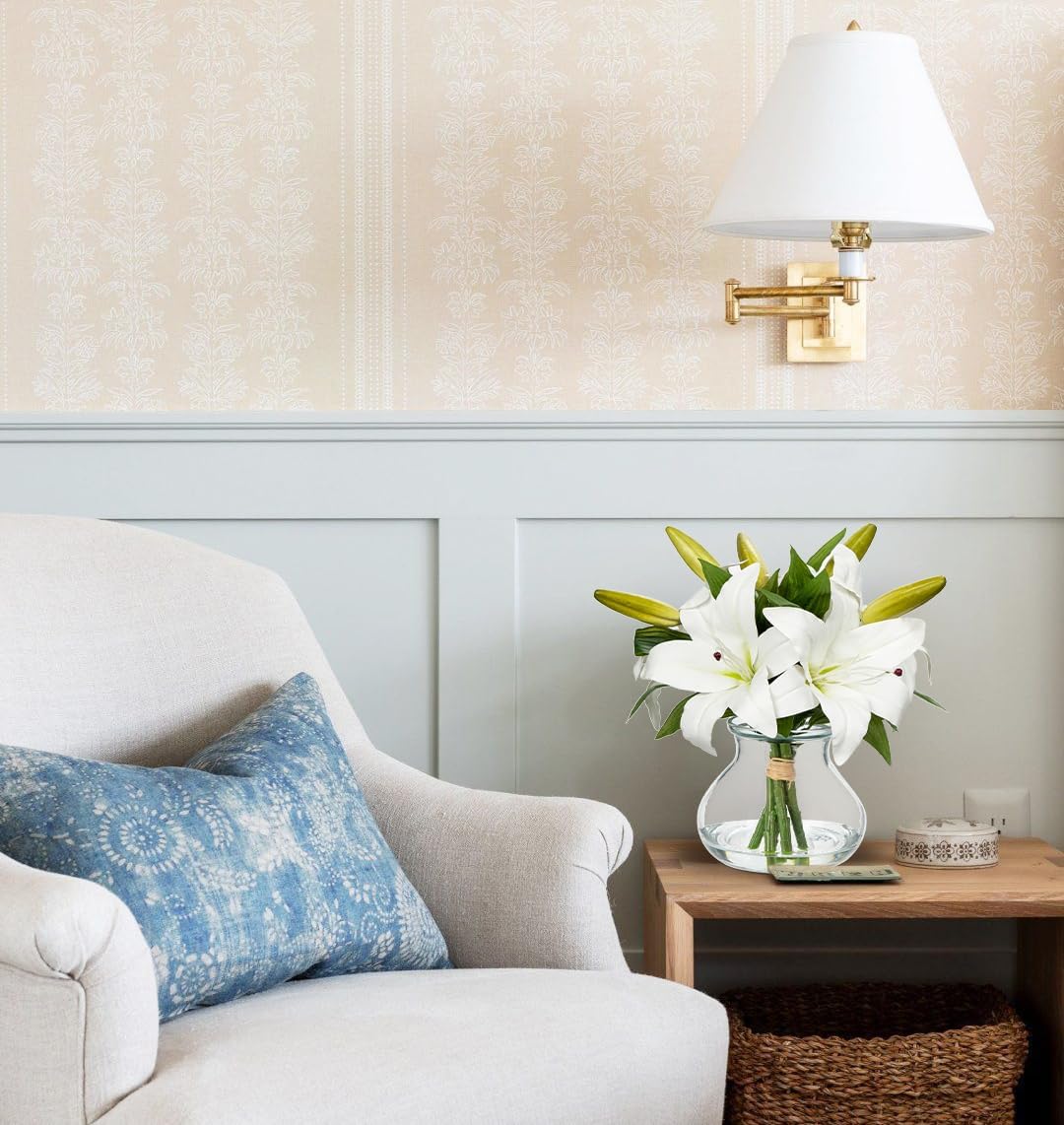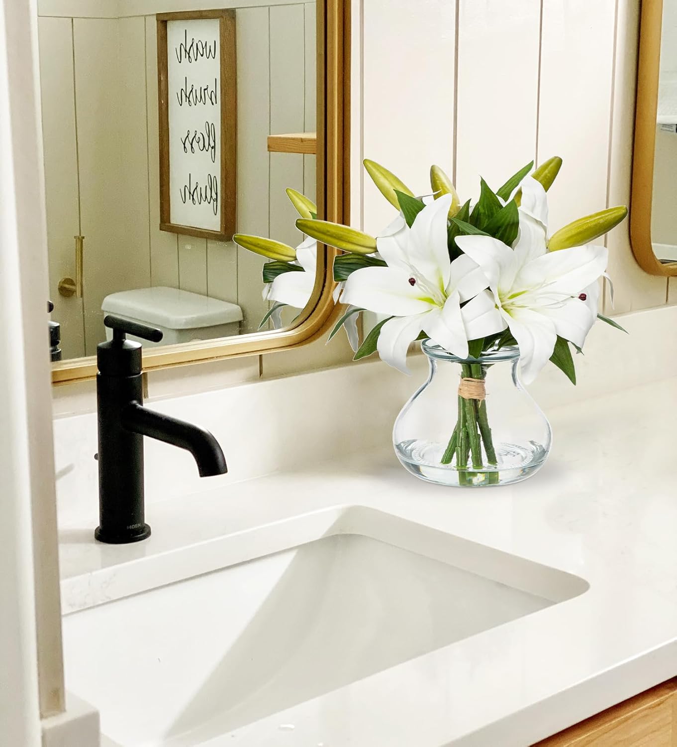 Artificial Flowers Tiger Lily Real Touch with Vase Easter Lily White Lilies Silk Faux Flowers Arrangements in Glass Vase with Faux Water Easter Decor Fake Floral Bulk Bouquet for Office Home Decor