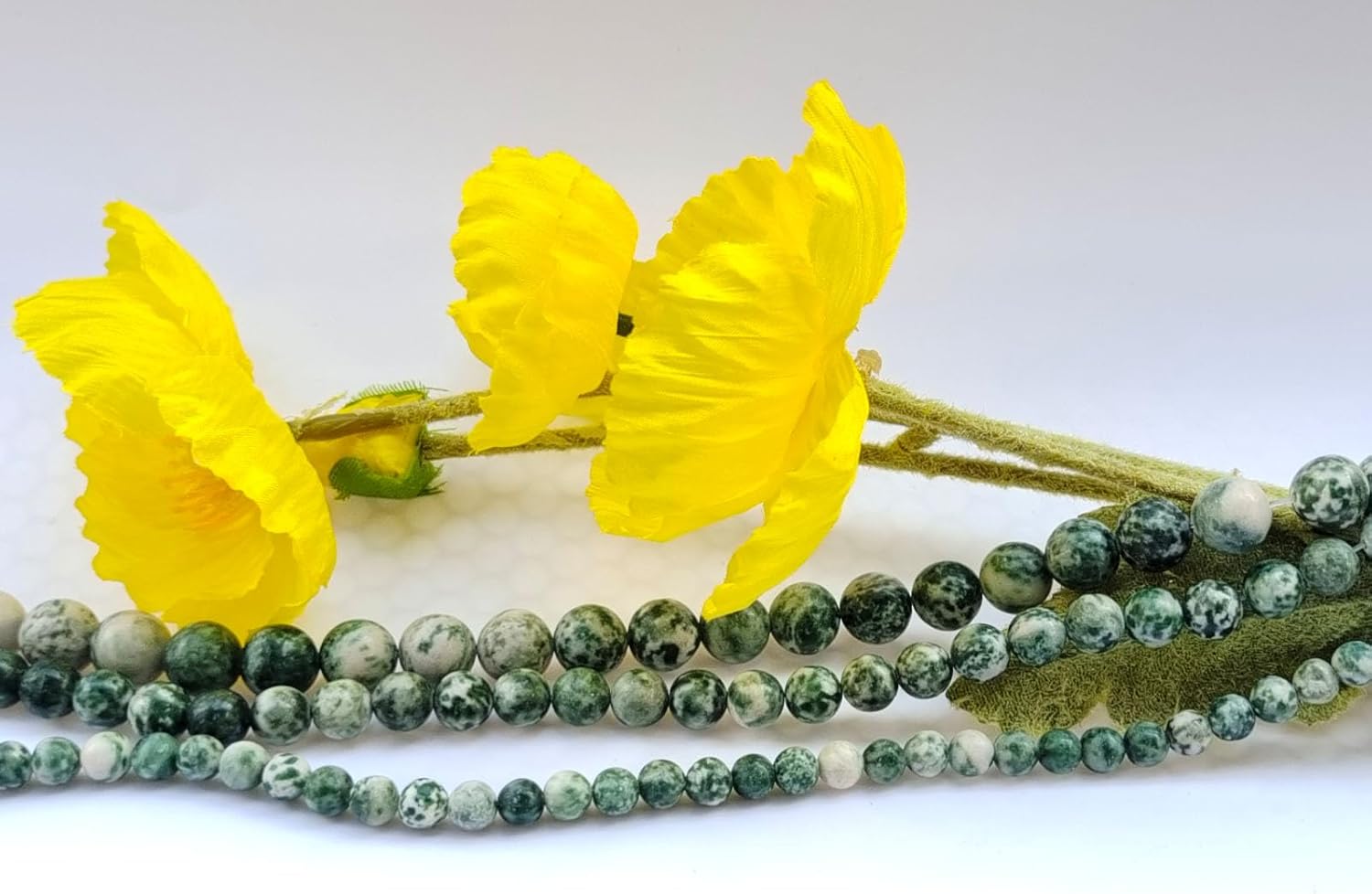 Stone Beads 10mm 60pcs Green Spot Jasper Beads Round Loose Gemstones Beads for Bracelet Necklace Jewelry Making (10mm, 61006 Green Spot Jasper)