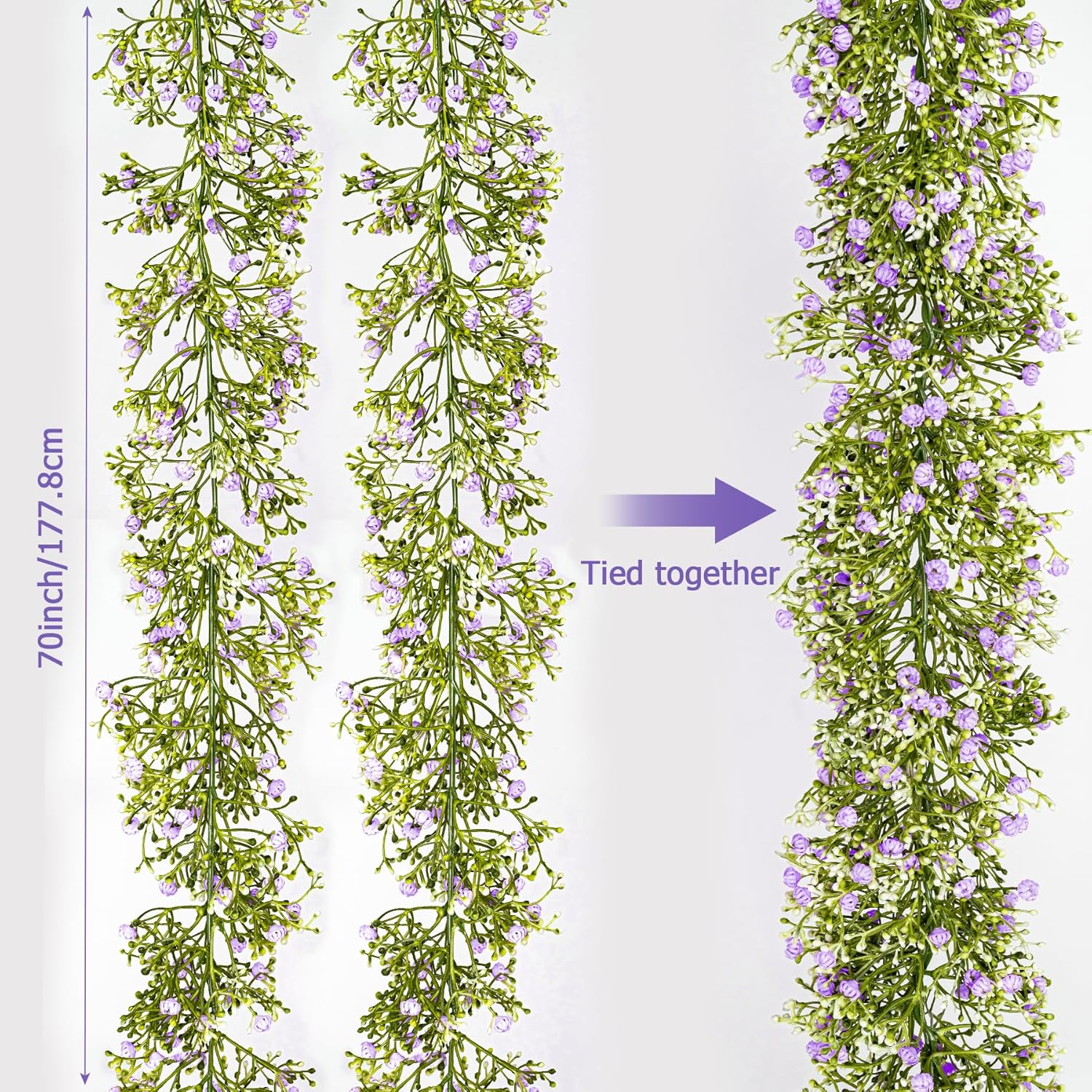 Artificial Baby Breath Flower Vines, Babys Breath Artificial Flowers Real Touch Faux Gypsophila Hanging Fake Baby's Breath Garlands for Wedding and Baby Shower Decor 2Pcs 5.8ft(Purple)