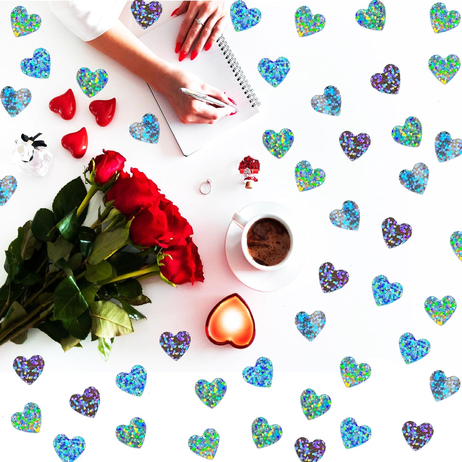 Confetti Heart Metallic Confetti Party Table Decoration Sprinkles DIY for Valentine's Day Wedding Birthday Engagement Bachelorette Theme Party Celebrations Favor Supplies(Heart Silver)
