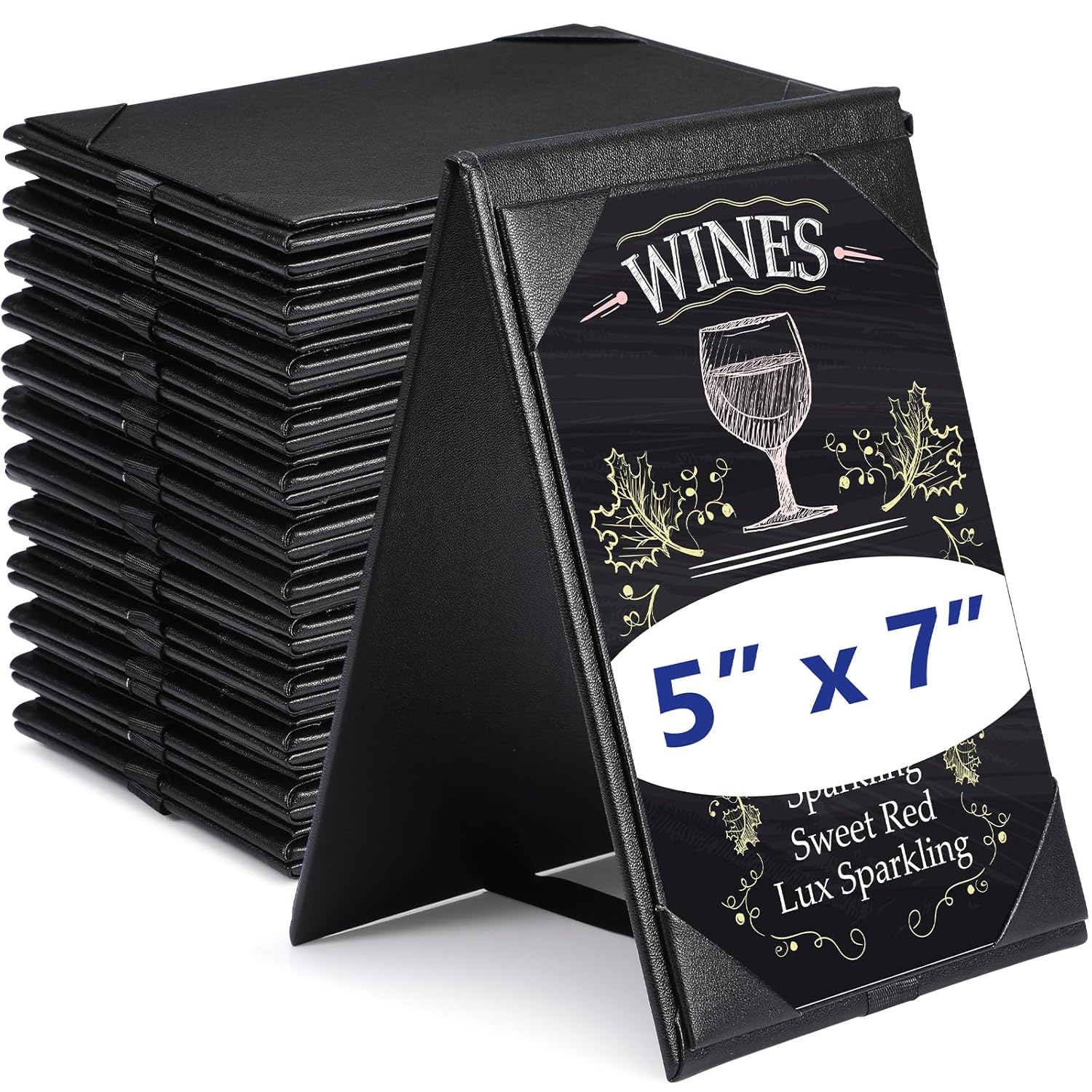 Gerrii Leatherette Table Tents Black PU Leather Menu Covers Bulk Double Sided Frame Sign Holders 2 Side Drink Dessert Menu Folders for Restaurant Coffee Cafe Bar Wedding Supplies(12 Pack,5 x 7 Inch)