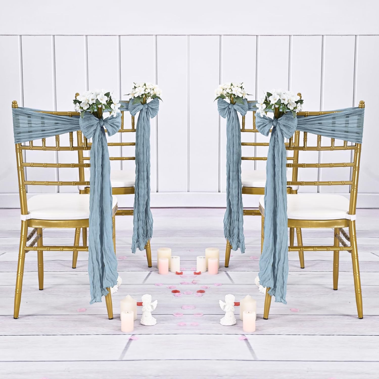 36 Pcs Dusty Blue Cheesecloth Chair Sashes, 16 x 108 inch Gauze Fabric Washable Chair Sashes Bows Designed for Aisle Decorations Universal Chair Cover Decor for Wedding Reception Party Banquet