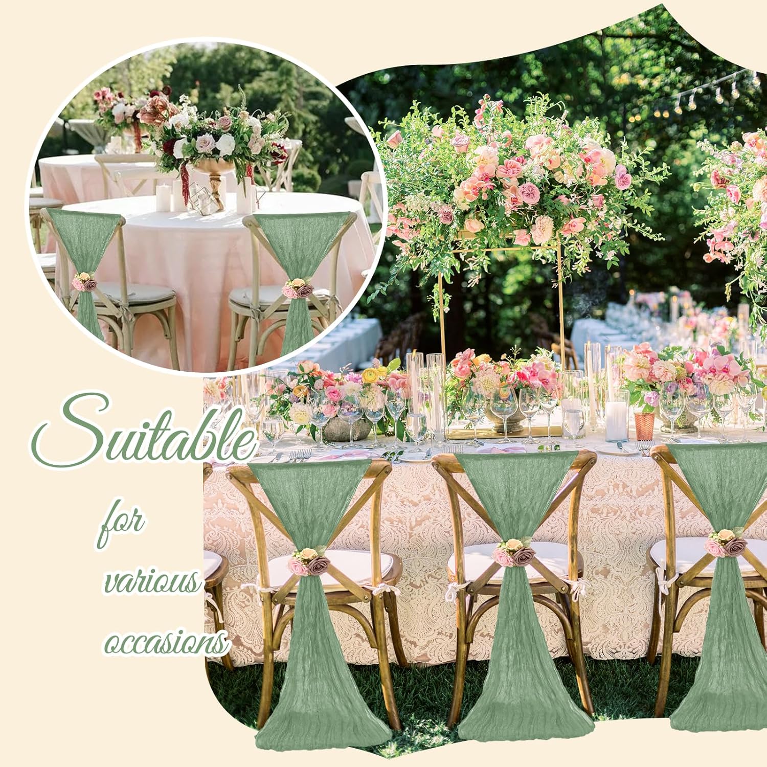 36 Pcs Sage Green Cheesecloth Chair Sashes, 16 x 108 inch Gauze Fabric Washable Chair Sashes Bows Designed for Aisle Decorations Universal Chair Cover Decor for Wedding Reception Party Banquet