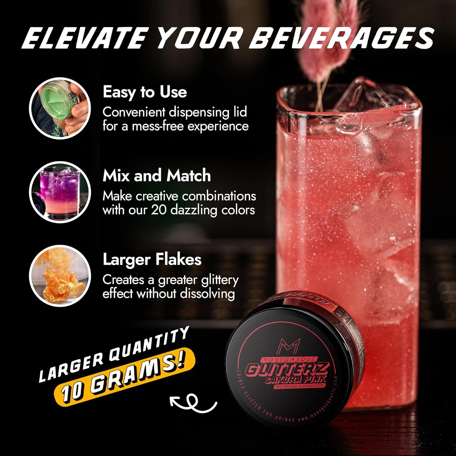 • VERSATILE, EASY, & MESS-FREE – Effortlessly enhance any dish or drink. Simply sprinkle MONÉGASQUE Glitterz onto halloween cocktails or desserts for a dazzling effect. With 20 vibrant colors, it's perfect for any event, keeping your creations stunningly fresh.