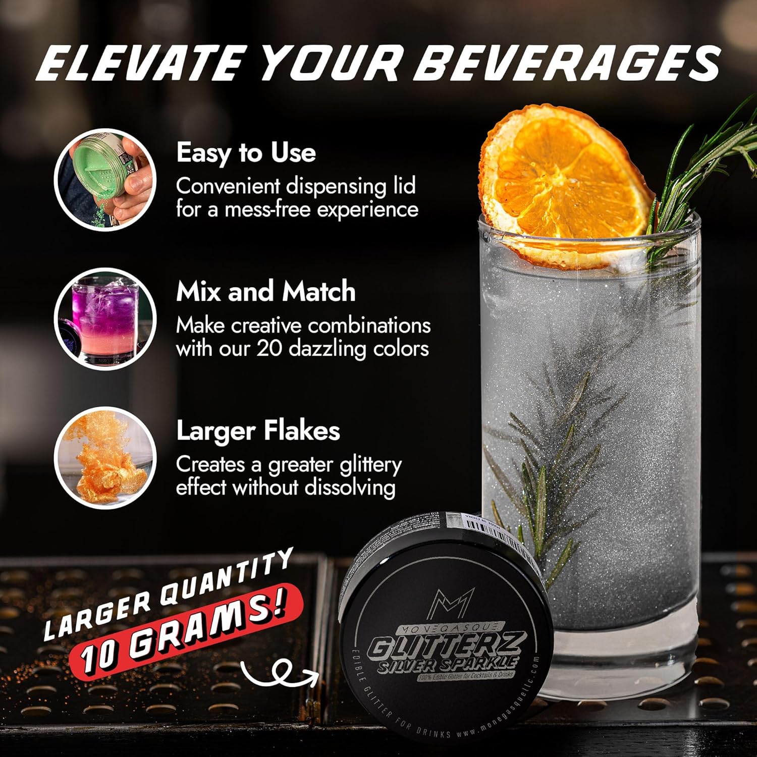 • VERSATILE, EASY, & MESS-FREE – Effortlessly enhance any dish or drink. Simply sprinkle MONÉGASQUE Glitterz onto halloween cocktails or desserts for a dazzling effect. With 20 vibrant colors, it's perfect for any event, keeping your creations stunningly fresh.