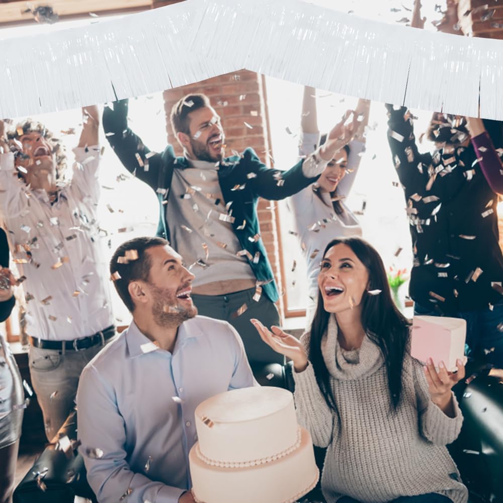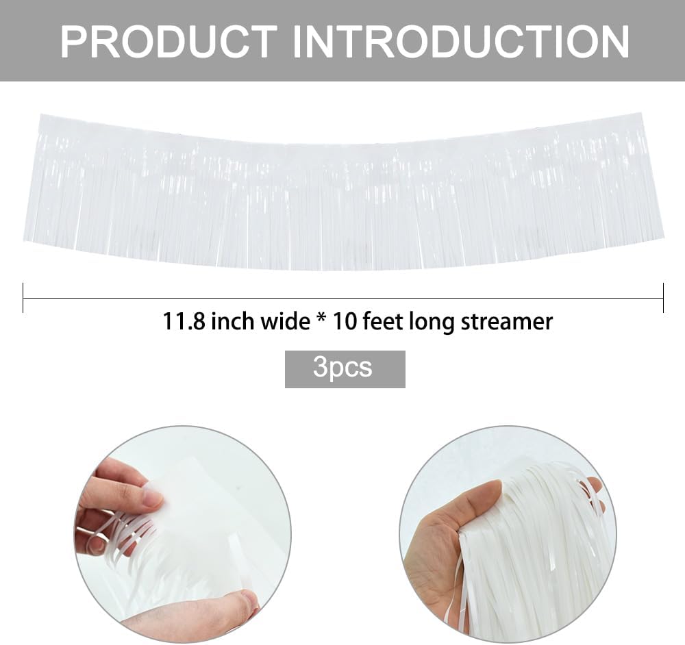 • 【Package includes】:3 Packs White shiny fringed tassel banner, each tassel garland is about 10 feet long, enough to decorate your party.