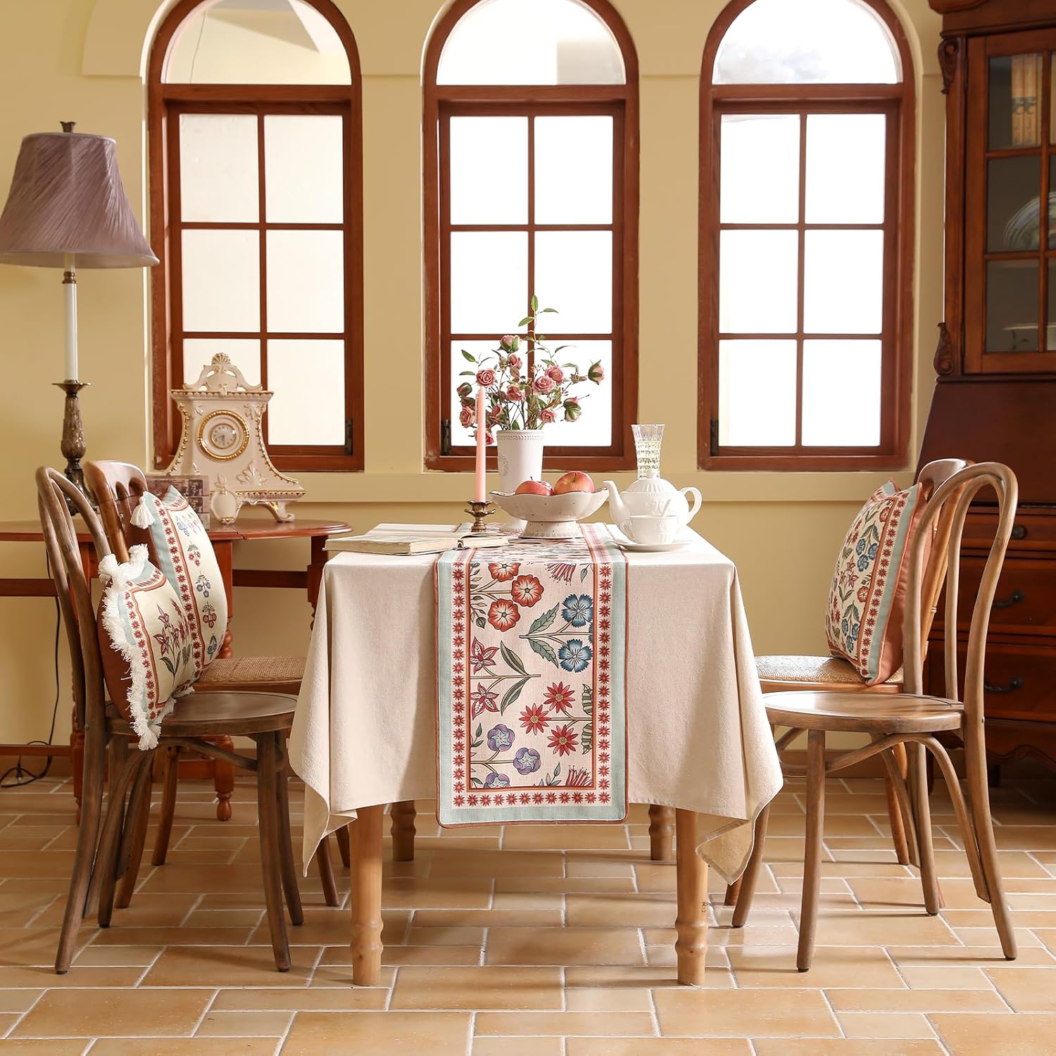 Decorative Linen Small Table Runner 63 Inches Long,Green Floral Rustic Fall Runner for Table Decor Tabletop Table Runners for Kitchen,Dining,Party,Home,Christmas,12"*63"