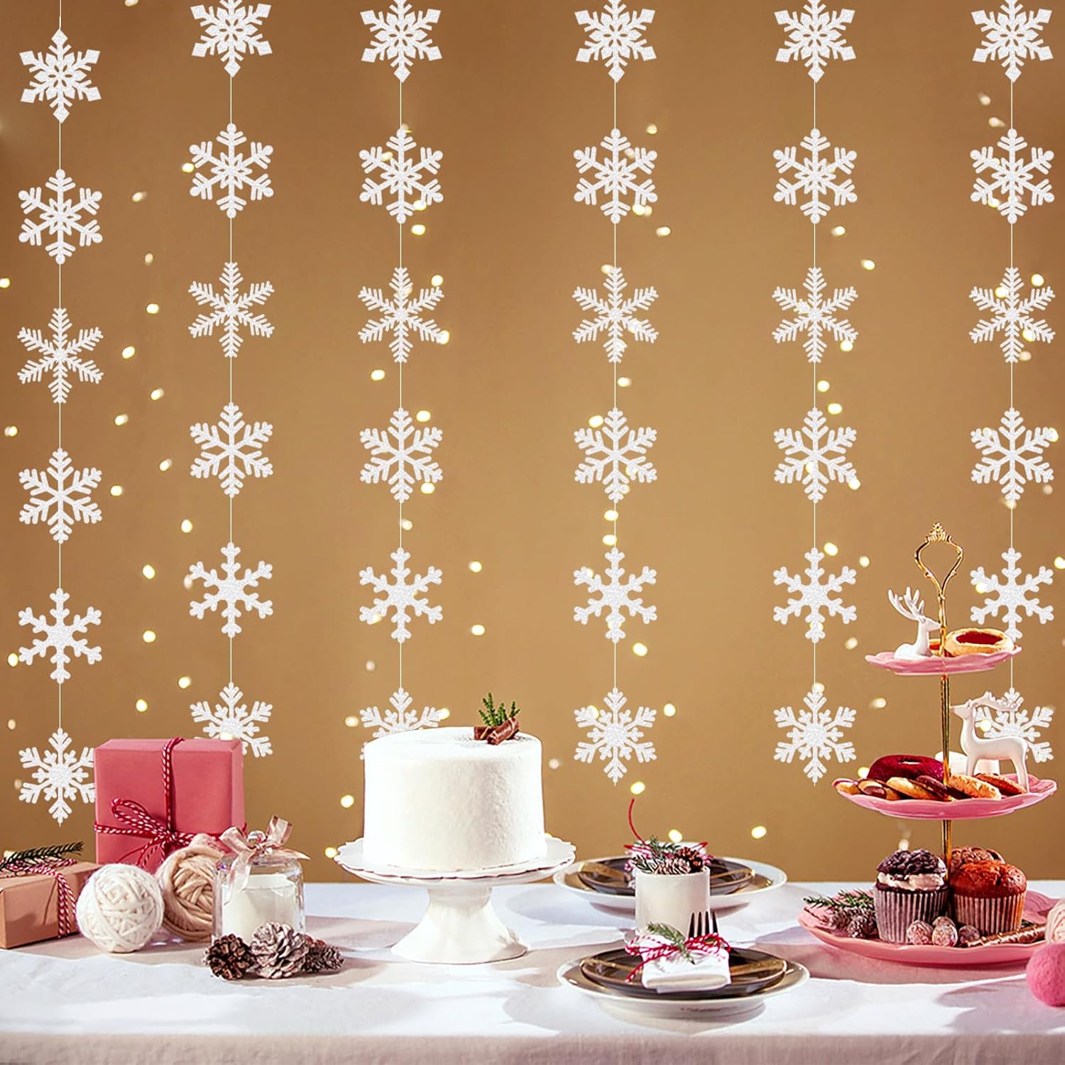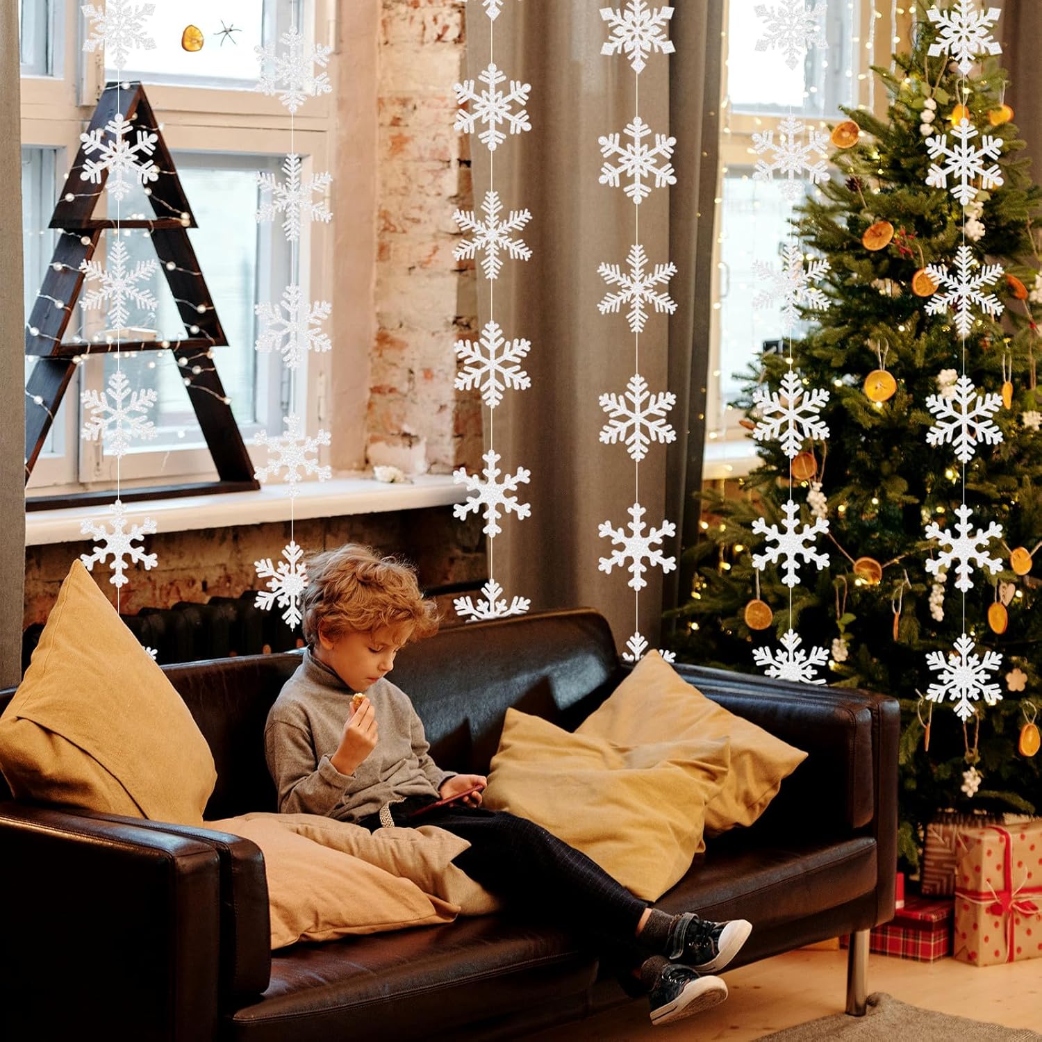 • 【Package Contains】6 sets of the party banner garland,each is 5.41feet/ 1.65 meters long, total length is 32.46 feet/ 9.9 meters.Every Banner has 6pcs snowflake,the size is 10cm(3.93").