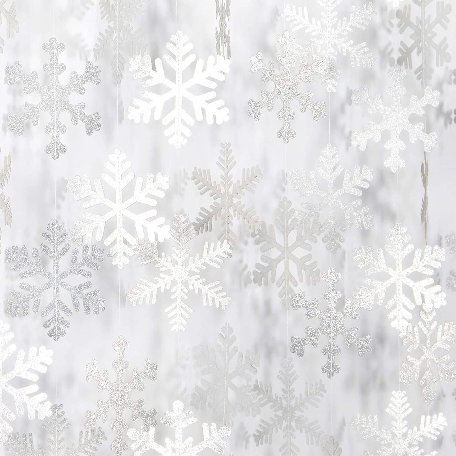 Snowflake Snow White-Silver Christmas Party-Decorations Garland - 6pcs Winter Girl Frozen Birthday New Year Hanging Decoration Streamers Banner, Wonderland Party Supplies Decor Panduola