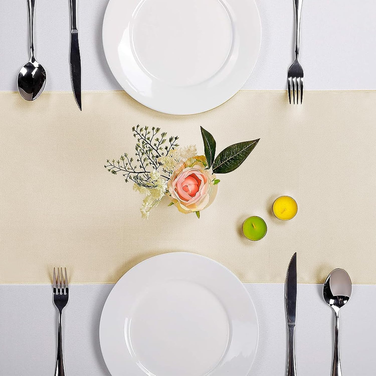 15-Pack Satin Table Runner Champagne 12 x 108 inches Long, Table Runners for Wedding, Birthday Parties, Banquets Decorations(15 Pack, 12x108 Inch, Champagne