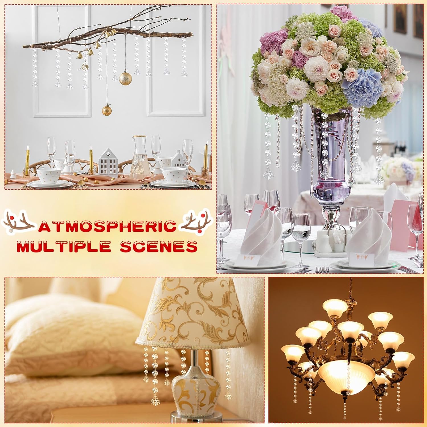 • Elegant Decor: crystal chandelier beads are ideal for Christmas trees, crafts and DIY projects, chandelier decorations, wedding centerpieces, party centerpieces and more, easy to draw people's attention, which can enhance the festive ambience