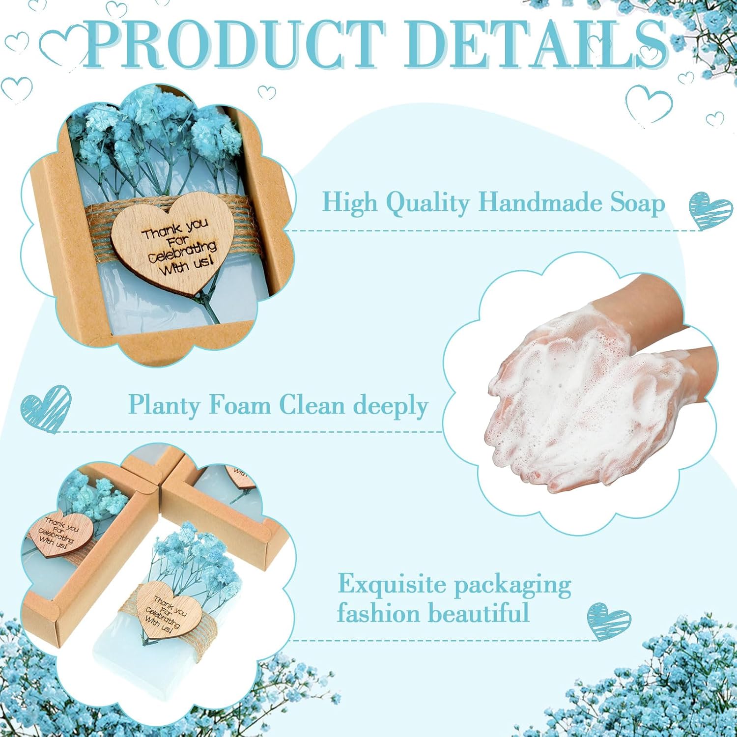 • Convenient and No Assembly Required: save time and effort with our pre assembled soap party favors; Delight in our soap favors, which are designed for your immediate pleasure; Each beautifully crafted bar is ready to produce an ample lather instantly, decrease troubles