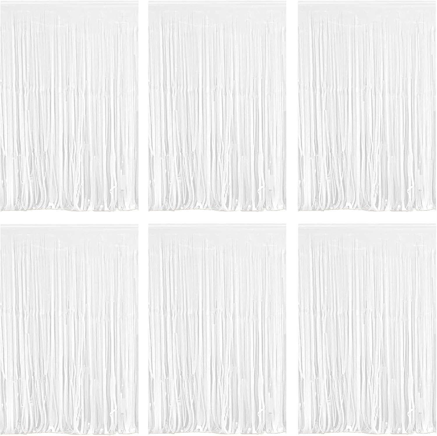 White Foil Fringe Curtain 3.3×8.3FT 6 Packs, Metallic Tinsel Curtains Party Streamers for Birthday Graduation Baby Shower Decoration (6pcs,3.3FT×8.3FT, White)