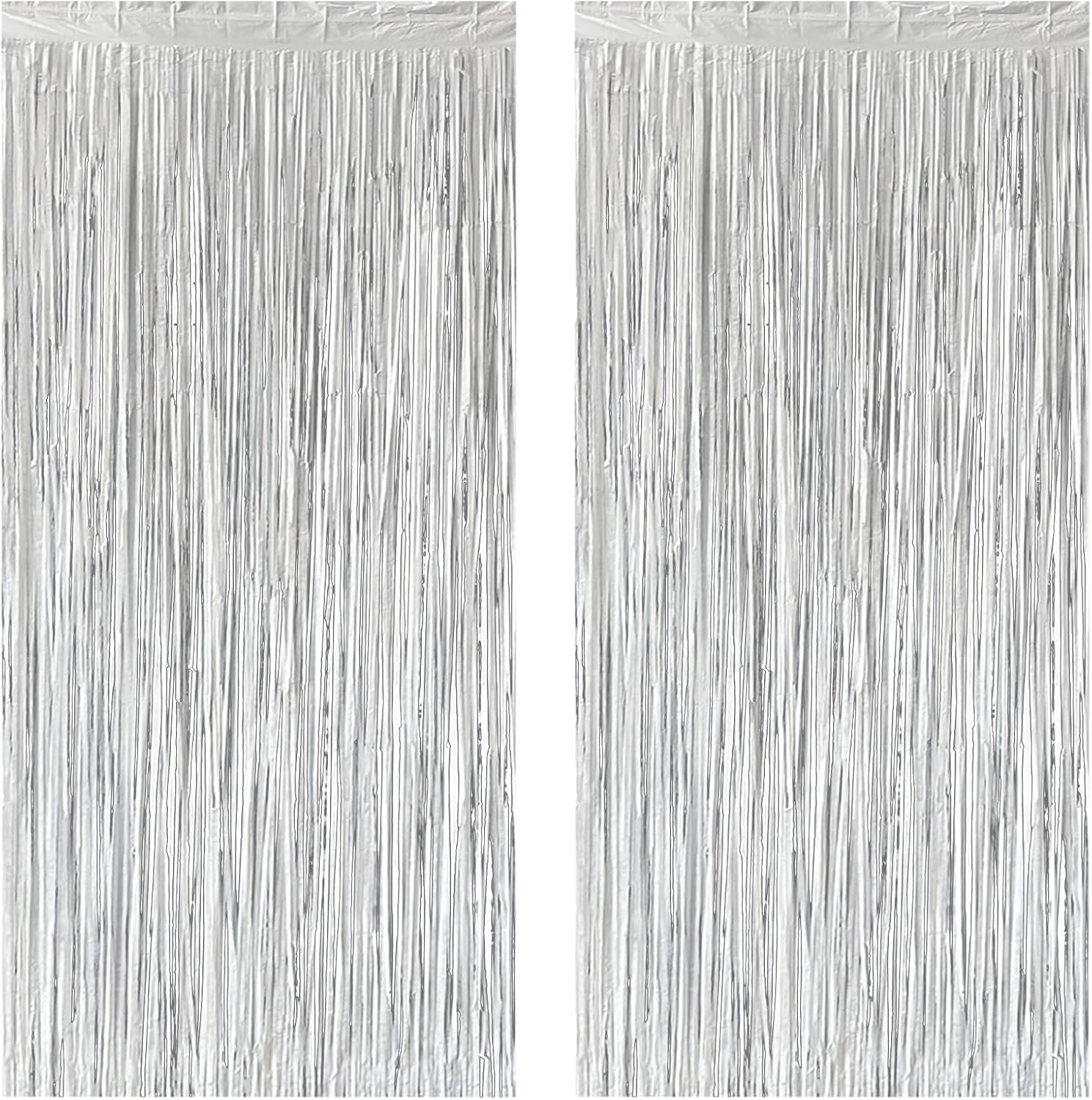 Silver Foil Fringe Curtain 3.3×8.3FT 2 Packs, Metallic Tinsel Curtains Party Streamers for Birthday Graduation Baby Shower Decoration (2pcs,3.3FT×8.3FT, Silver)