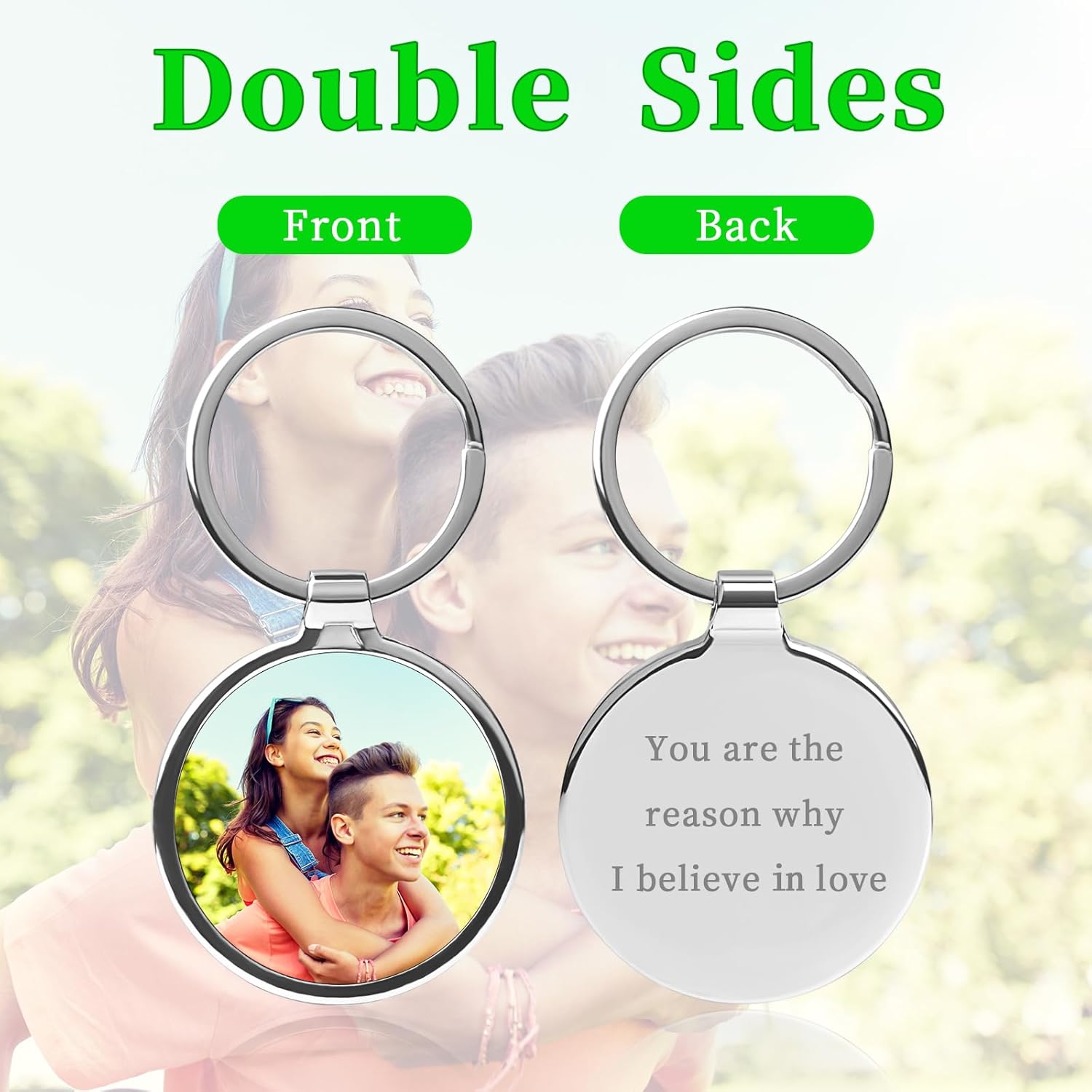 Double Side Custom Keychain with Picture Personalized Engraving Photo Text Customized Gifts for Men Women