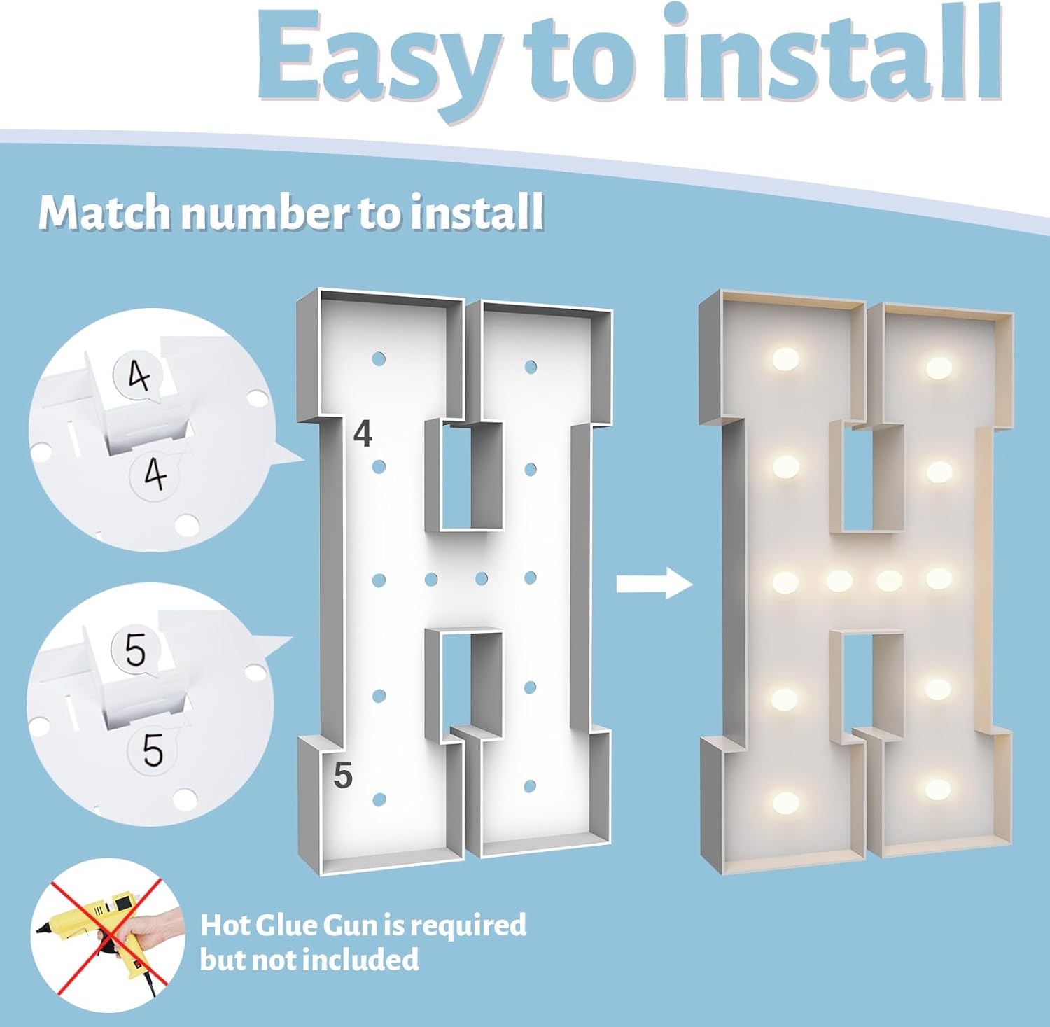 4FT Marquee Light Up Letters H,Party Decoration Large Marquee Light Up Letters with Weighted Water Bag,Pre-cut Foam Board Set Can Be Used for Birthdays,Weddings,Baby Anniversaries