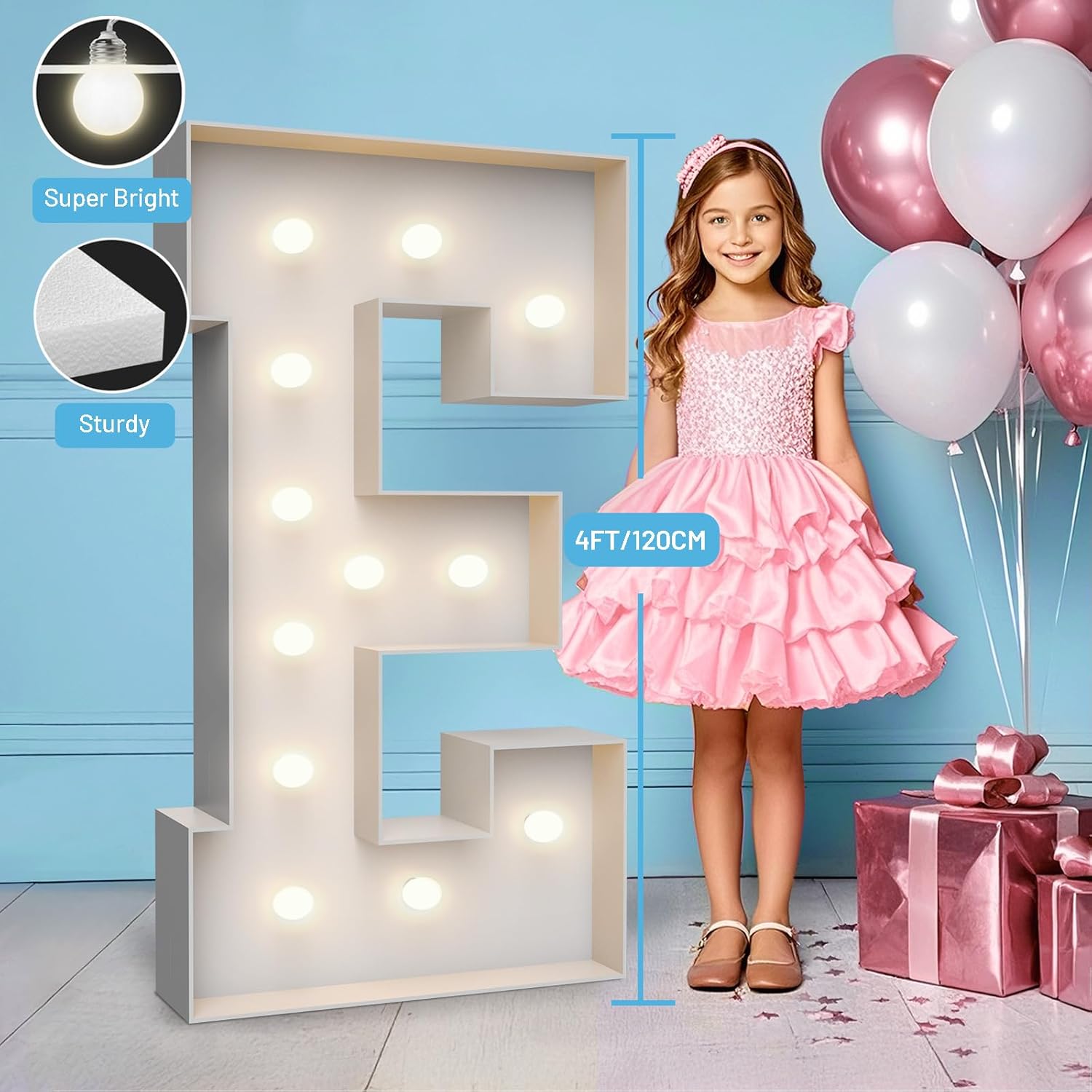 • SUPER CUTE FOR PARTY: The 4FT numbers with warm bulbs are super cute for indoor and outdoor party decors, like baby shower; wedding; birthday, and every event. Decorating your party with these big, stunning marquee numbers is amazing, especially when they stand together as background