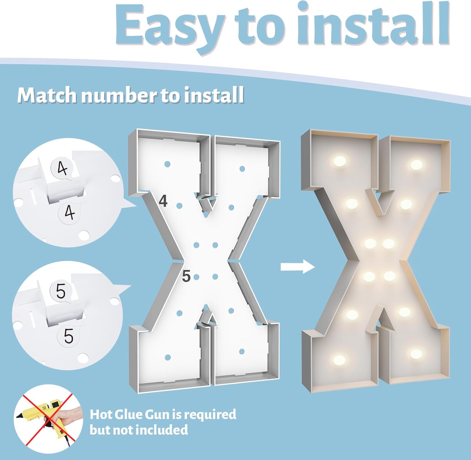 4FT Marquee Light Up Letters X,Party Decoration Large Marquee Light Up Letters with Weighted Water Bag,Pre-cut Foam Board Set Can Be Used for Birthdays,Weddings,Baby Anniversaries