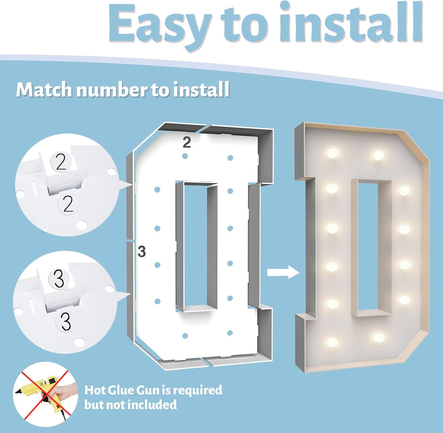 • ASSEMBLY REQUIRED: The marquee numbers need to be assembly with hot glue gun(not included in the package) Assemble it in advance will make your party amazing and fantastic