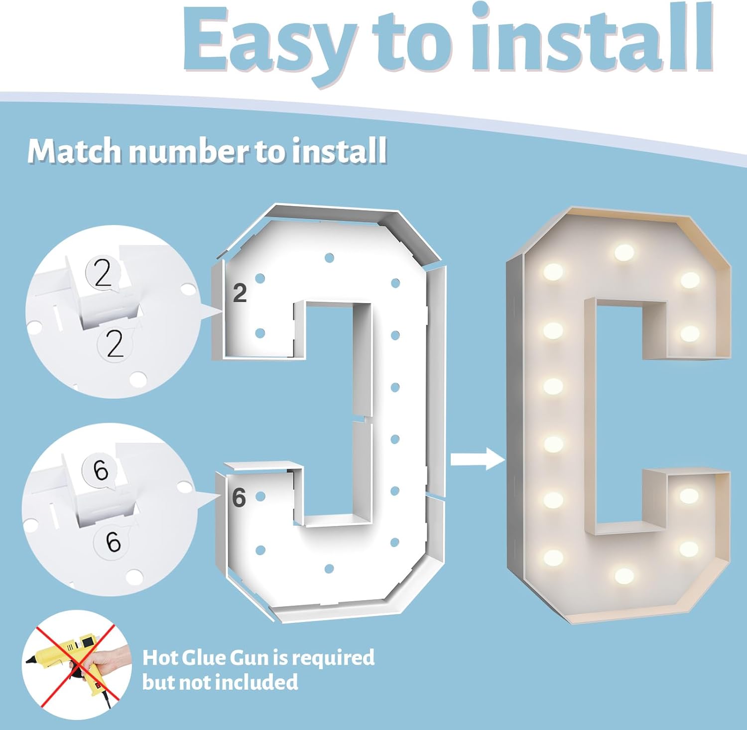 • ASSEMBLY REQUIRED: The marquee numbers need to be assembly with hot glue gun(not included in the package) Assemble it in advance will make your party amazing and fantastic