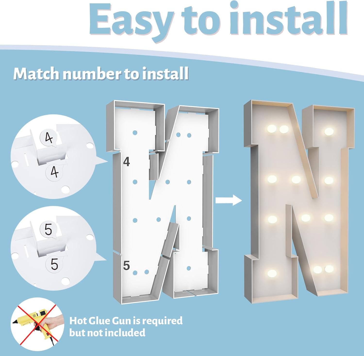 • ASSEMBLY REQUIRED: The marquee numbers need to be assembly with hot glue gun(not included in the package) Assemble it in advance will make your party amazing and fantastic