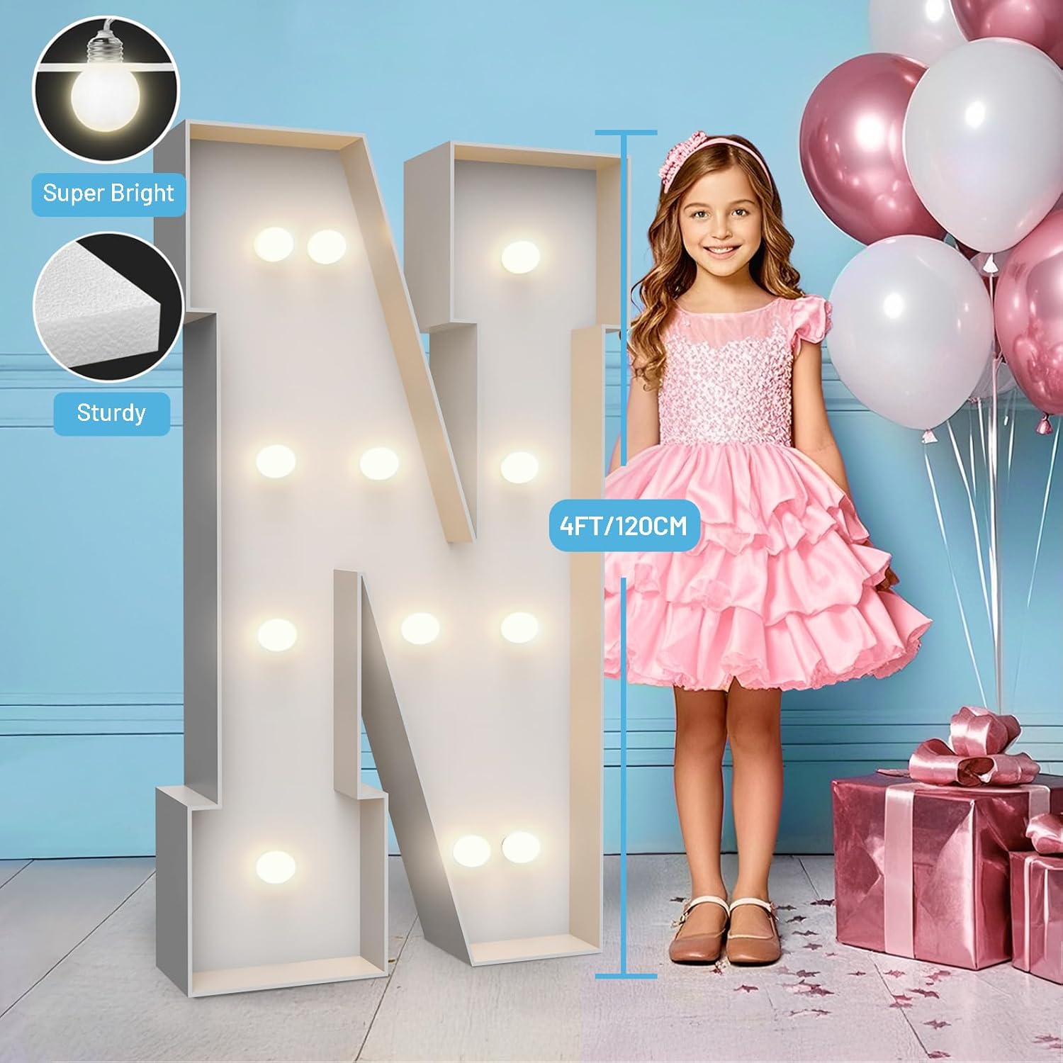 4FT Marquee Light Up Letters N,Party Decoration Large Marquee Light Up Letters with Weighted Water Bag,Pre-cut Foam Board Set Can Be Used for Birthdays,Weddings,Baby Anniversaries