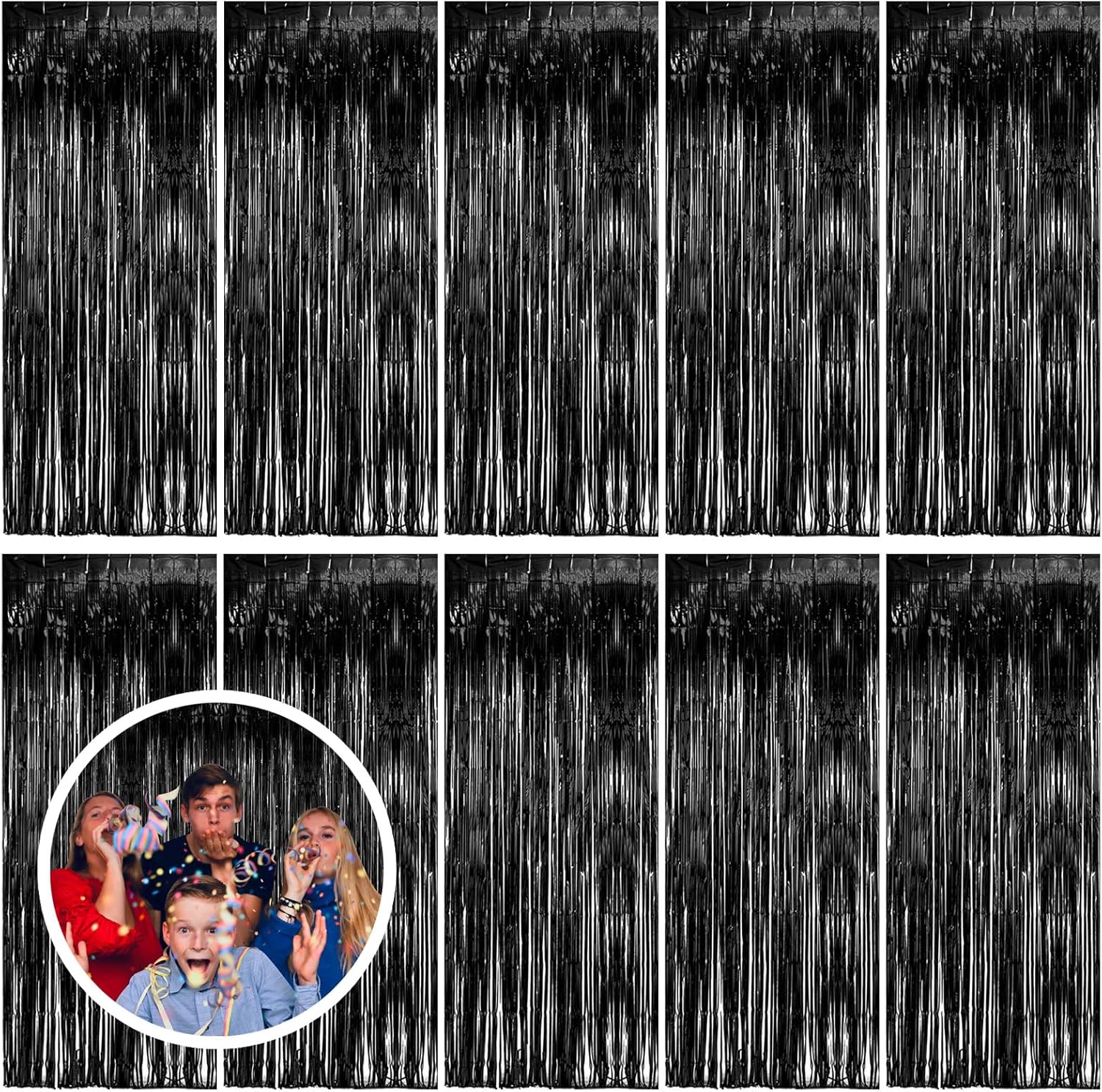 • Party Streamers Backdrop: 10Packs/Set, each pack curtains size is 3.28 ft x 6.56 ft, enough length foil fringe backdrops are perfect for the door or wall to create an impressive decoration for parties, events, and photo booths. Create your own party decorations now!