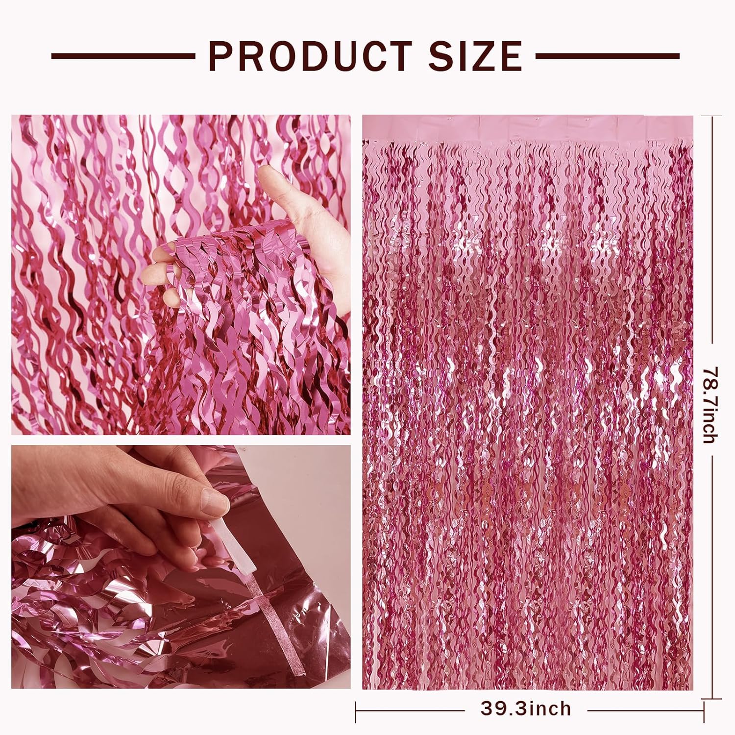 • Pink Photo Backdrop - The wavy foil fringe curtains with sparkle, a stunning decorative piece that will add a touch of glamour and elegance to your party decorations.