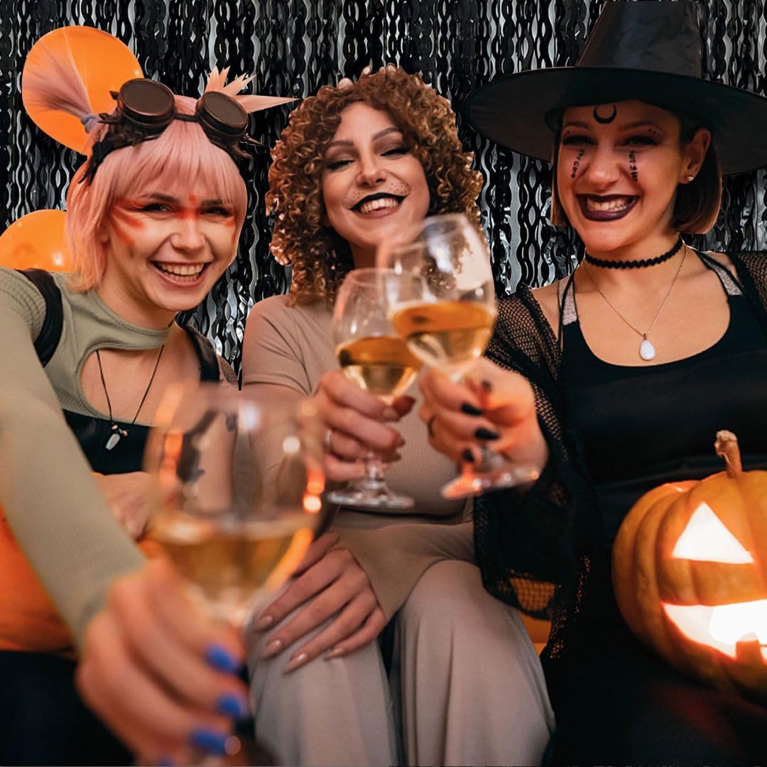 Black Fringe Curtain Party Streamers 5Pcs Foil Fringe Backdrop Curtains Wave Tinsel Streamers Black Party Decorations Door Streamers for Birthday Wedding Bridal Shower Halloween Decor