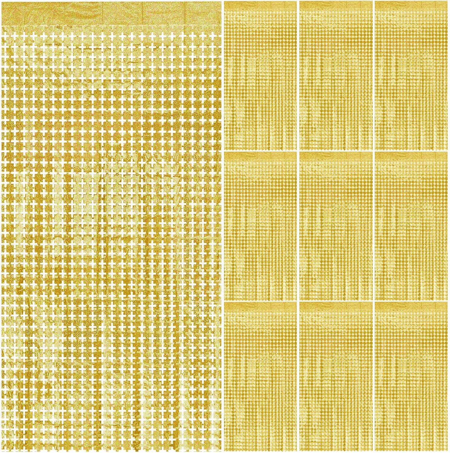 • 【Gold Streamers Party Decorations】You will get 10pcs 3.2 x 6.5 feet gold square shape laser foil fringe tinsel curtain. You can use to decorate party easily, door streamer. Sparkle and bling streamerswill definitely create a Shiny nice atmosphere for your party.