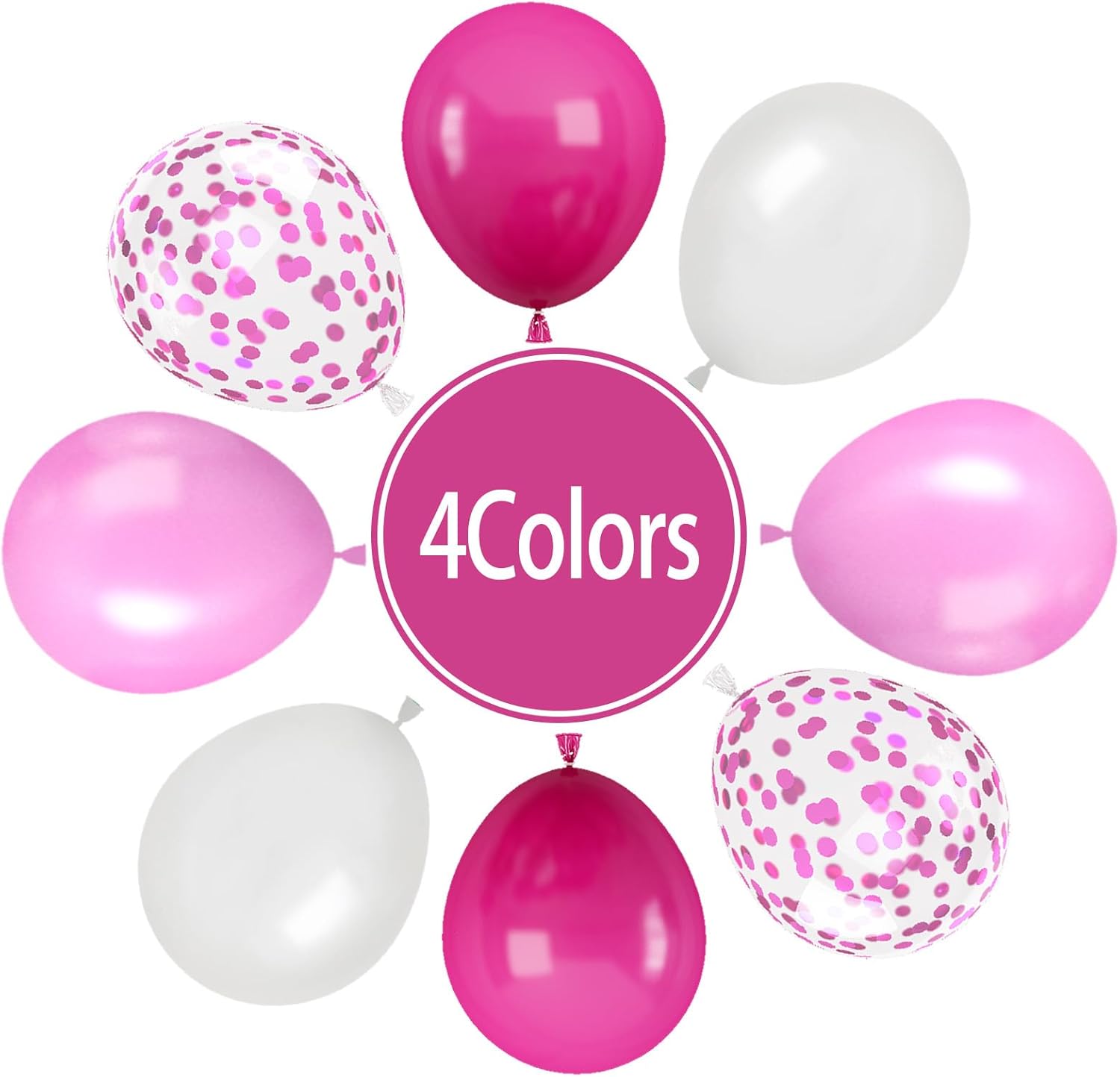 • Hot Pink Balloons Set: The 12 inch 62pcs hot pink balloons set includes 20pcs hot pink balloons, 15pcs pink balloons, 10pcs pink confetti balloons, 15pcs pearl white balloons, 2 roll of ribbon. A variety of hot pink latex balloons is suitable for your beautiful art theme decoration.