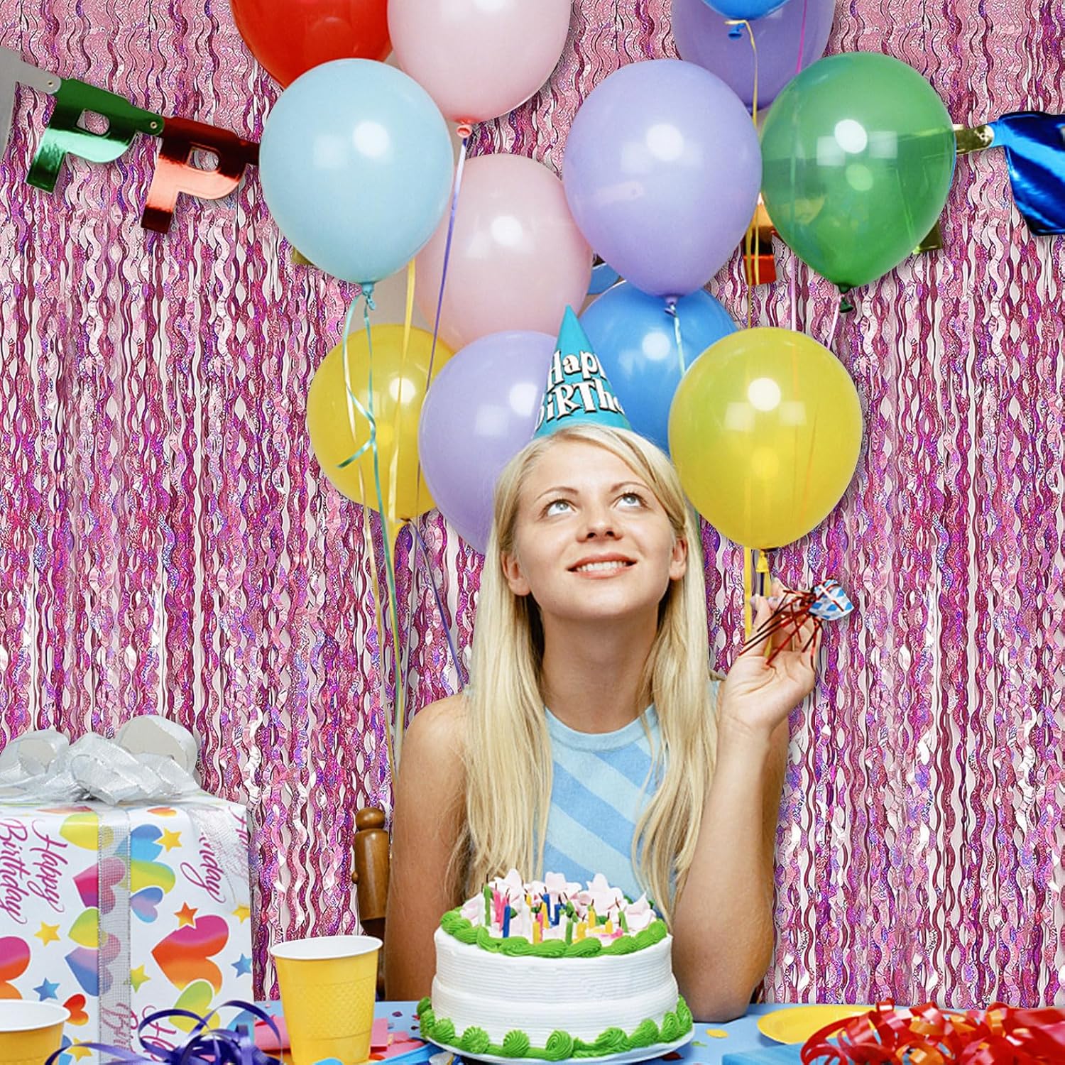 • Pink Streamers Backdrop:10Pack, each curtains size is 3.28 ft x 6.56 ft, enough length foil fringe backdrops are perfect for the door, wall and table,feel free to cut to any length you want.