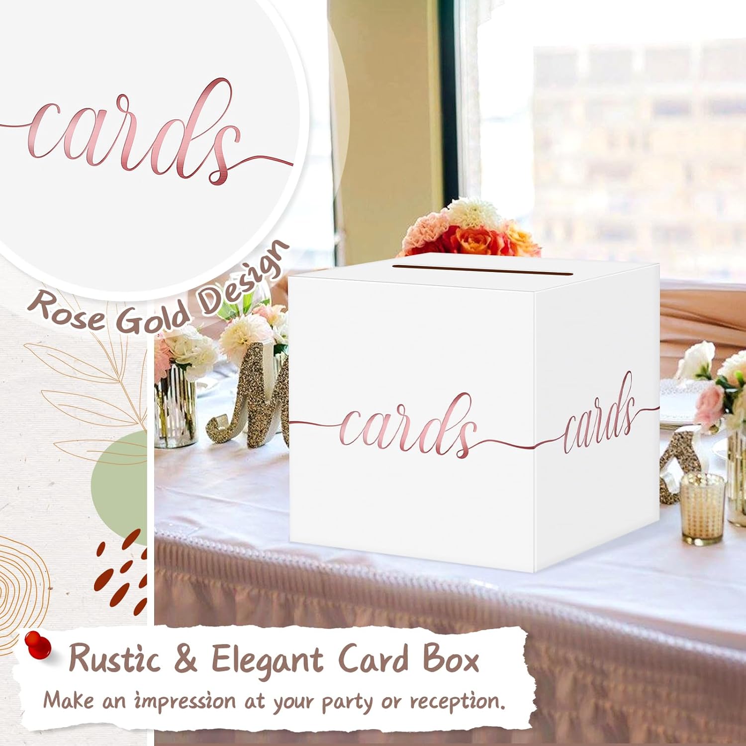 • Rose Gold Foil White Wedding Card Box Size: Pack of 1, card box measures 8.7 x 8.7 x 8.7 inches, large size to hold all sizes of envelope cards for weddings or parties.