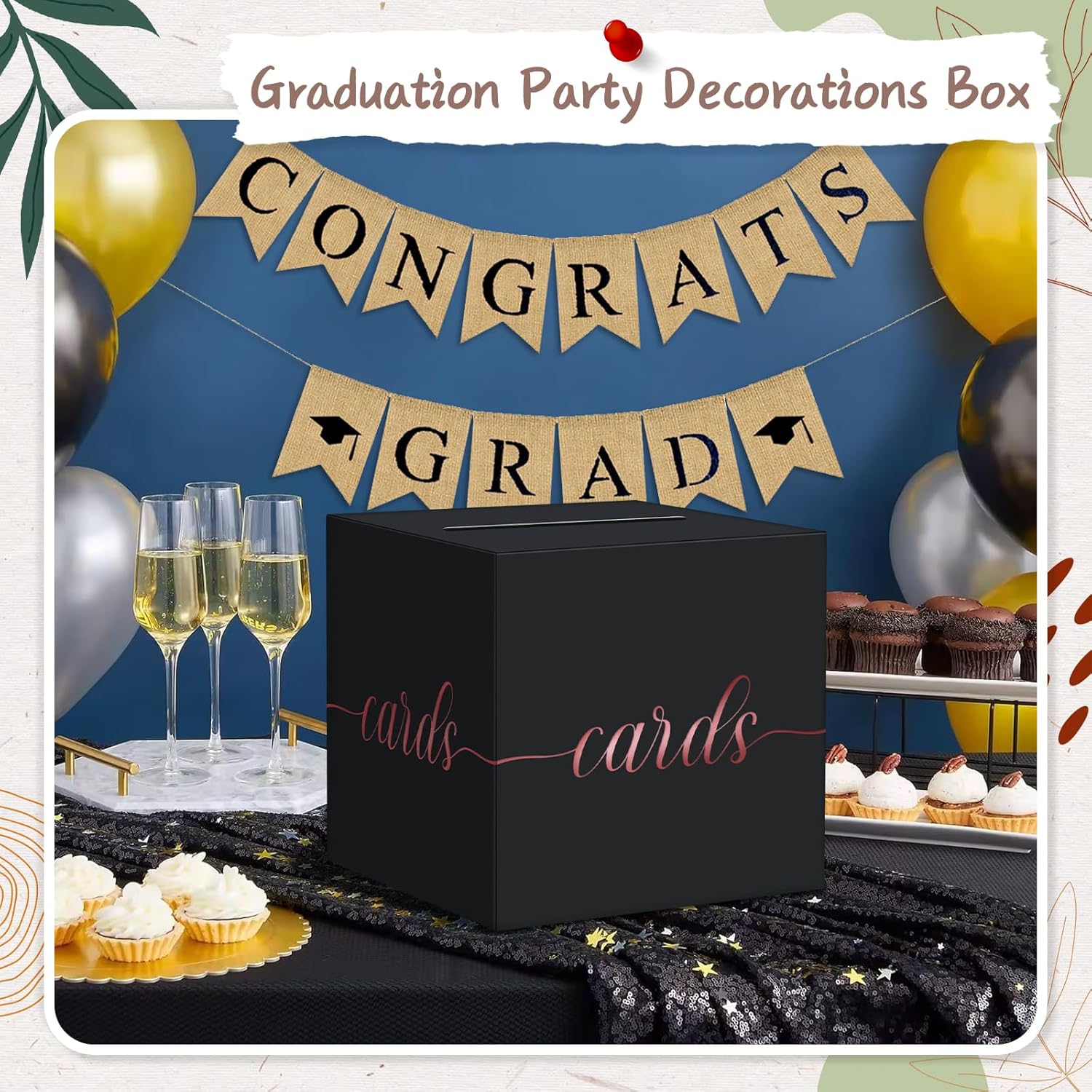 QIKSION Black Wedding Card Box, Rose Gold Foil Gift Card Box for Party, Wedding Reception, Graduation, Birthday, Baby Shower, Raffle
