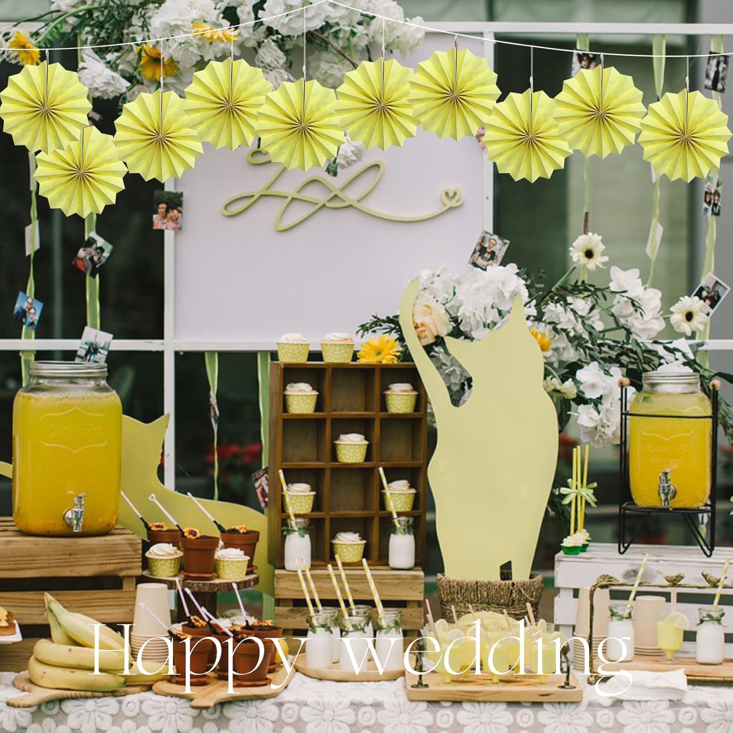 Yellow Hanging Paper Fans,Yellow Accessories Paper Decorations for Party,Color Party Decorations,Bee Themed Classroom Decor,8in Hanging Paper Fans 30 Color DIY Set (Light Yellow)