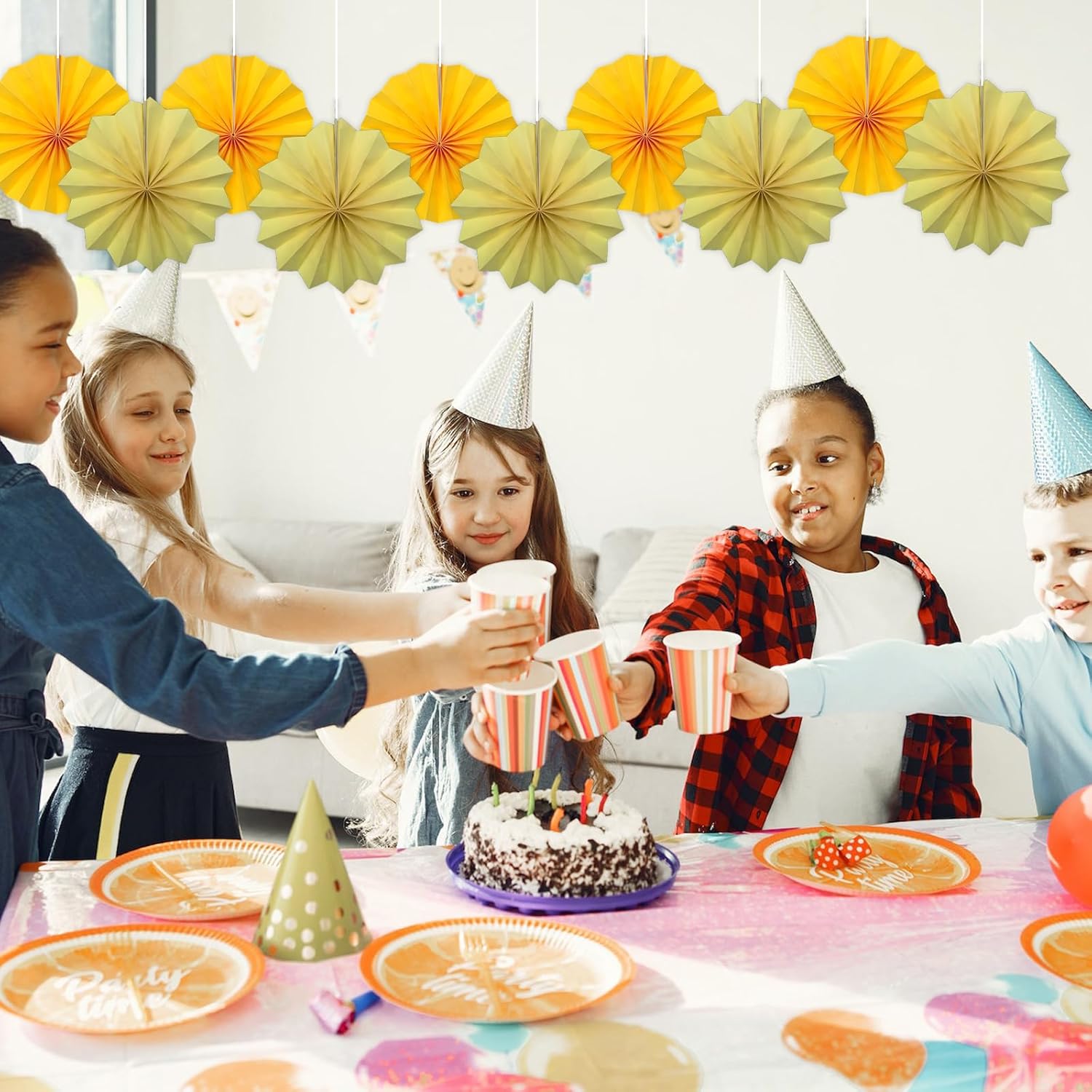 Yellow Birthday Decorations,DIY Yellow Paper Fans Hanging Decoration ,Party Supplies Party Fans 8in, Wedding Graduation Events Accessories 30 Color DIY Set (Yellow)