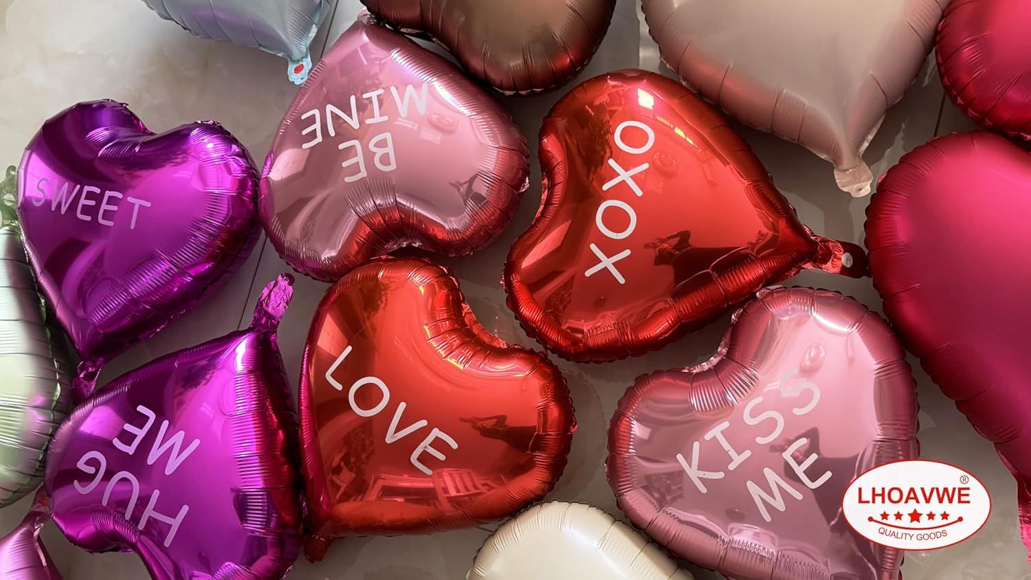 • Bright, Vibrant Mylar – Our premium quality love heart shaped valentine printed balloons are crafted with a durable, ultra-shiny aluminum foil that maintains form without leaking or losing air.