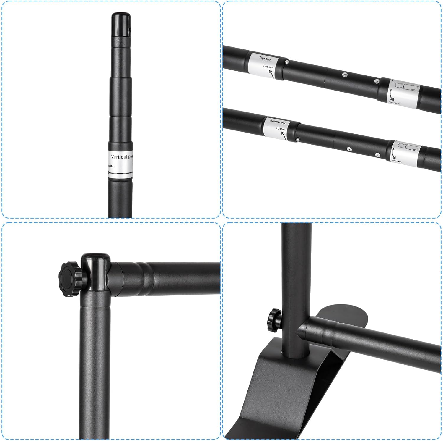 • (4) x Crossbar (2 Top Crossbars + 2 Bottom Crossbars) The maximum pipe diameter of the crossbar is 33mm. Adjustable width (Min 6.2 ft to Max 10 ft), The maximum visible graphic size is 10 ft wide x 10 ft high. Easy to connect, Material: Aluminum Alloy,Safely use.
