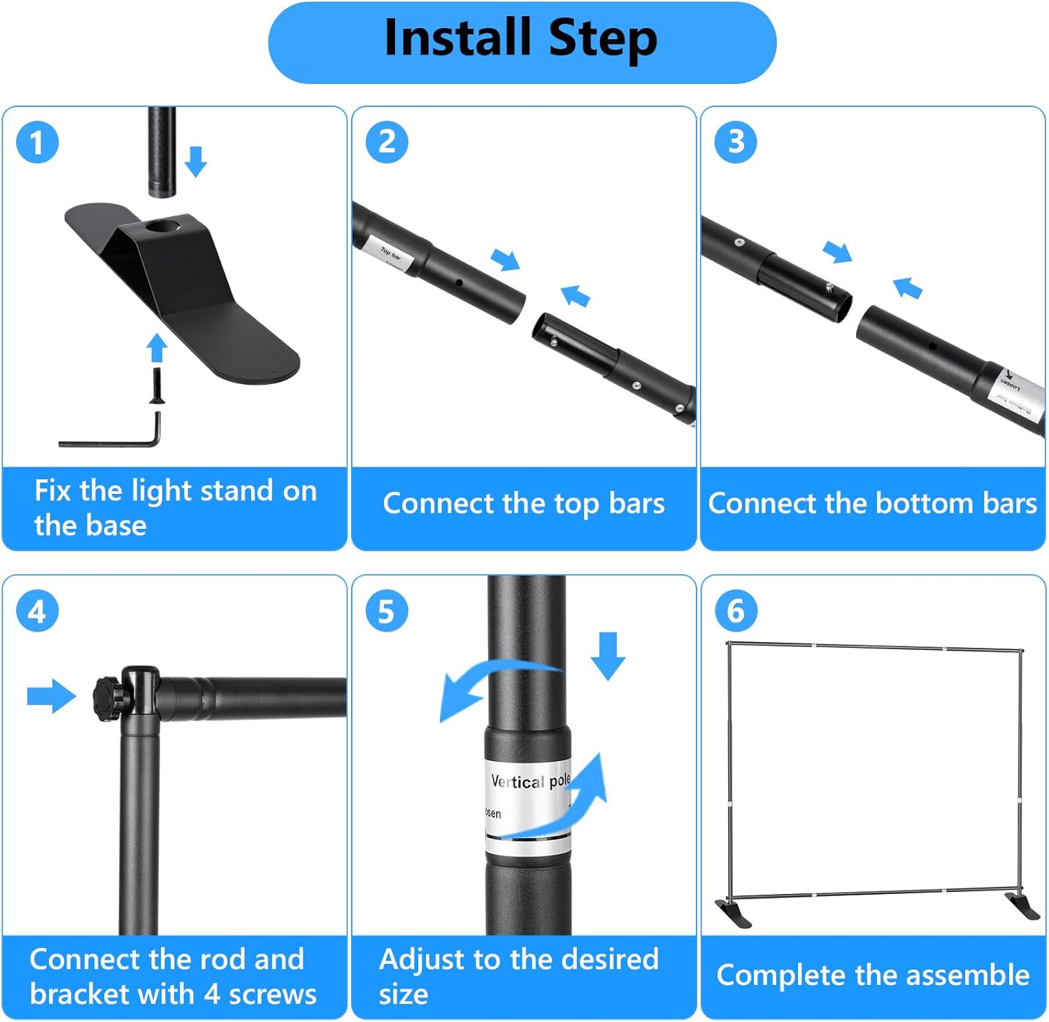 • Upgraded Heavy Metal Base/Thickened Pipe Diameter /More Stable & Wind-Proof/Adjustable Size. Suitable for meetings, photo exhibitions, local exhibitions, store promotions, photo booth backgrounds, etc. No matter you would like to use at outdoor or in office.