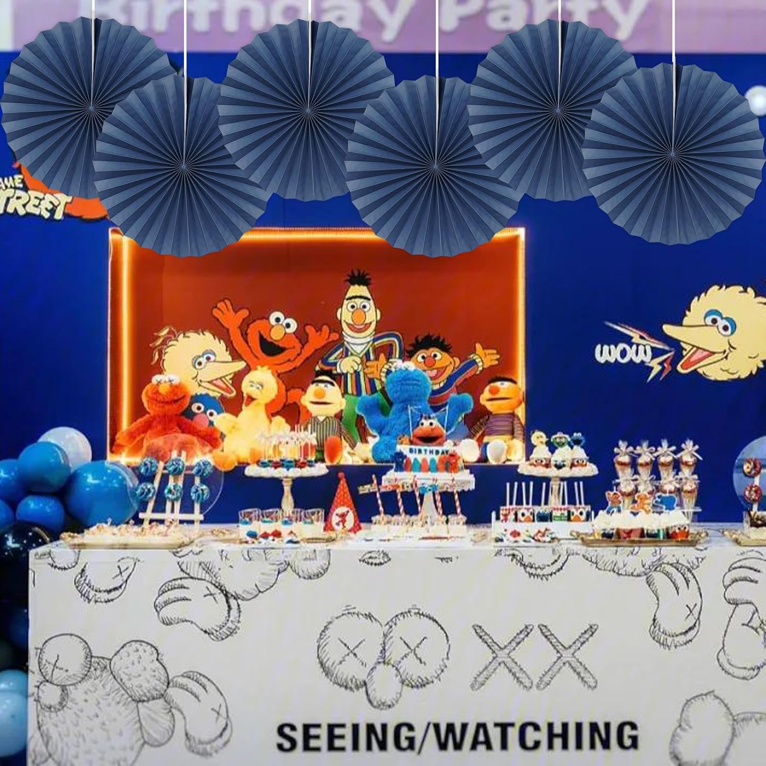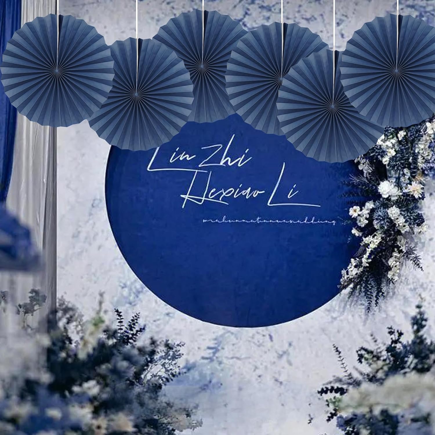 Blue Party Decorations,Blueberry Party Decorations Decorations Party Paper Fans Bulk 16in,Graduation Decoration Classroom Decor, Western Themed Party Decorations 30 Color DIY Set (Deep Blue)