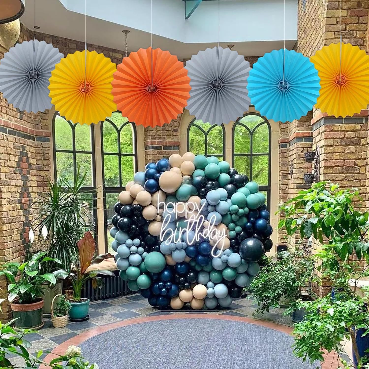 Gray Party Decorations,Wedding Decorations for Party Events Accessories,Anniversary Decorations,Birthday Decorations for Men,16in Hanging Paper Fans 30 Color DIY Set(Gray)