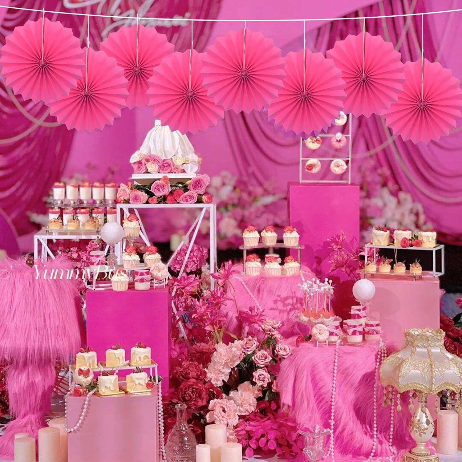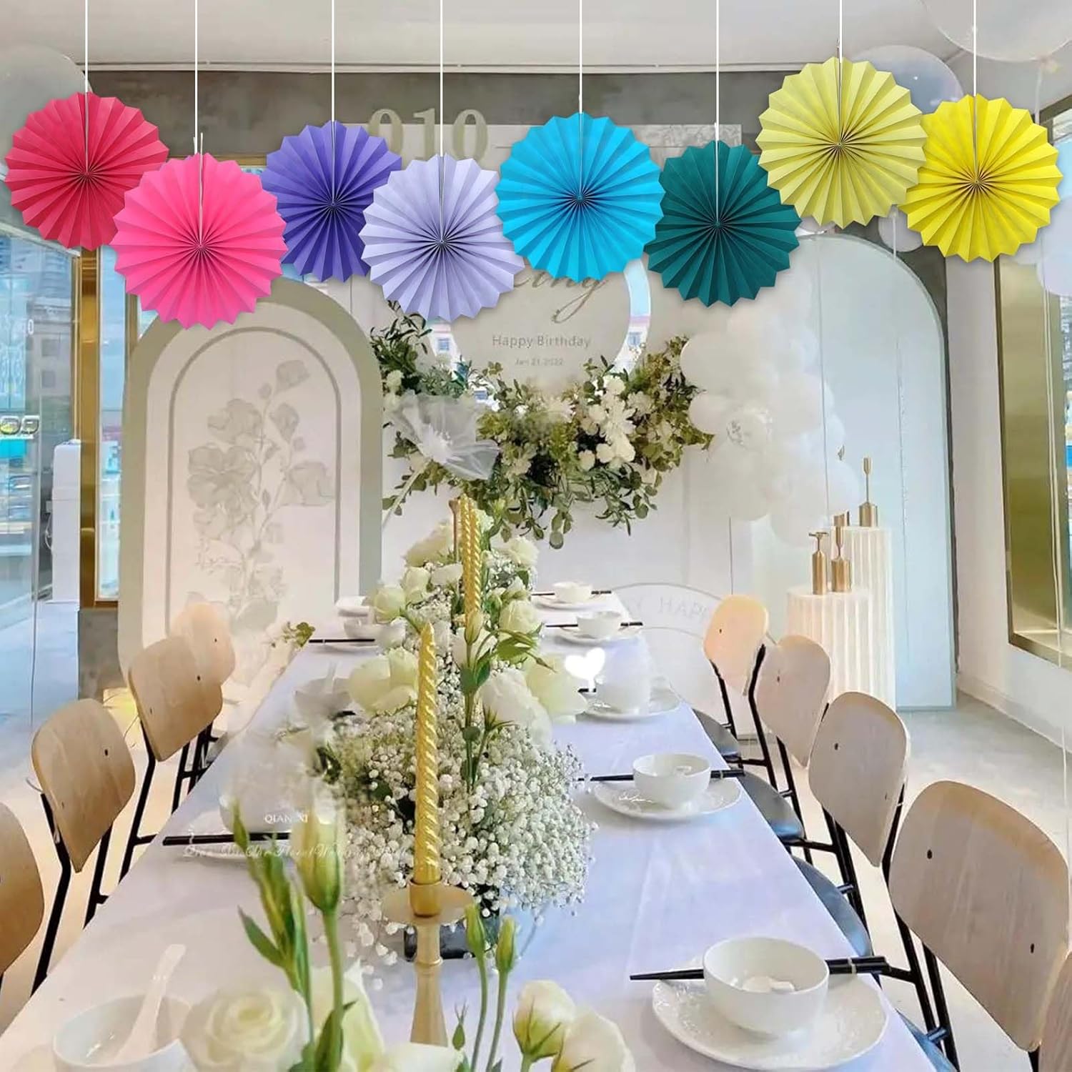 Red Graduation Party Decor,Girls Party Decorations ,Party Supplies Party Fans 12in, Anniversary Decorations for Party,Wedding Graduation Events Accessories 30 Color DIY Set (Rose Red)