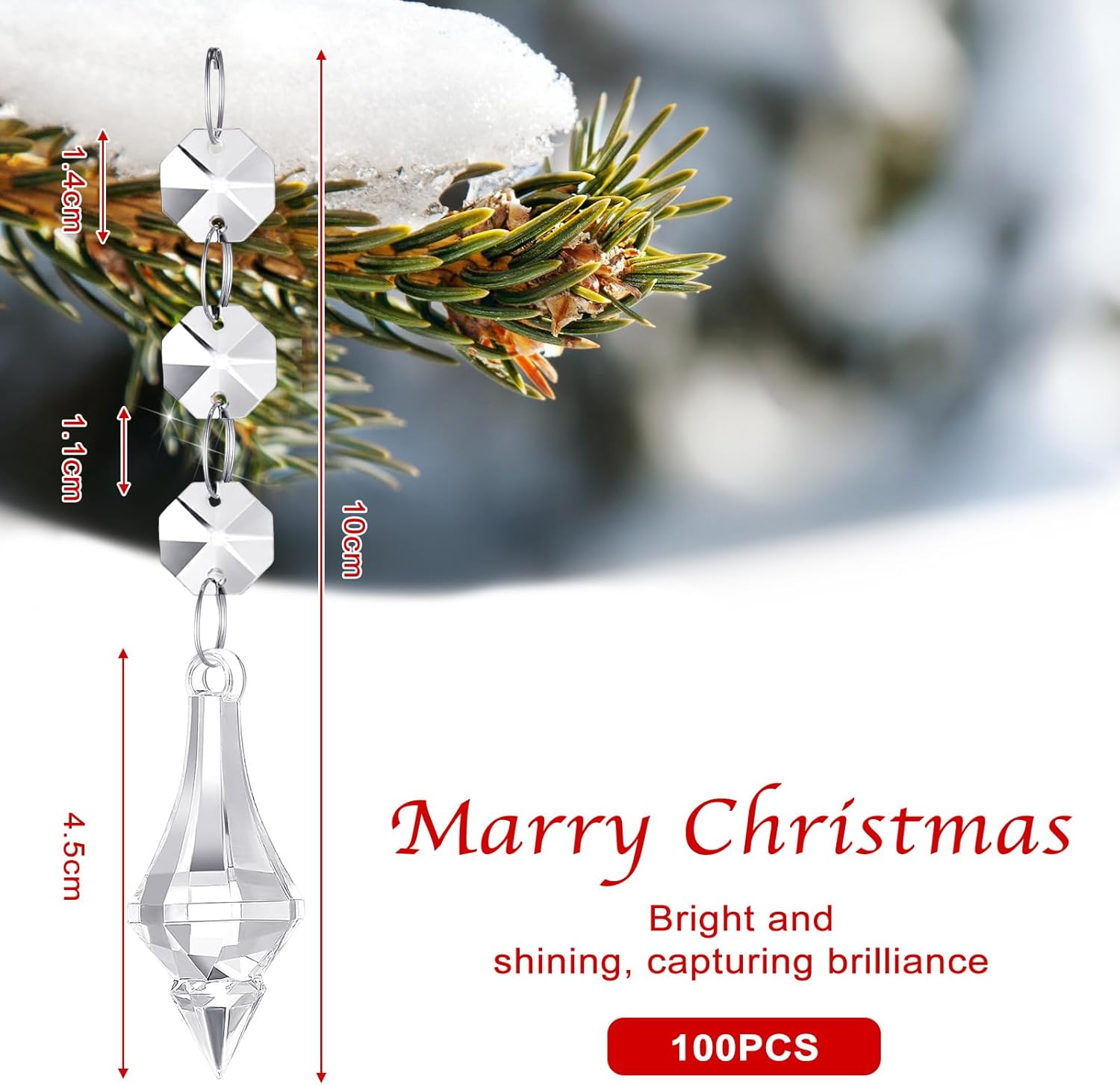 • Christmas Theme Design: the clear crystal beads are designed into clear colors, which can turn the sun's rays into many rainbows, easy to attract the attentions of both kids and adults, helping create a strong Christmas atmosphere