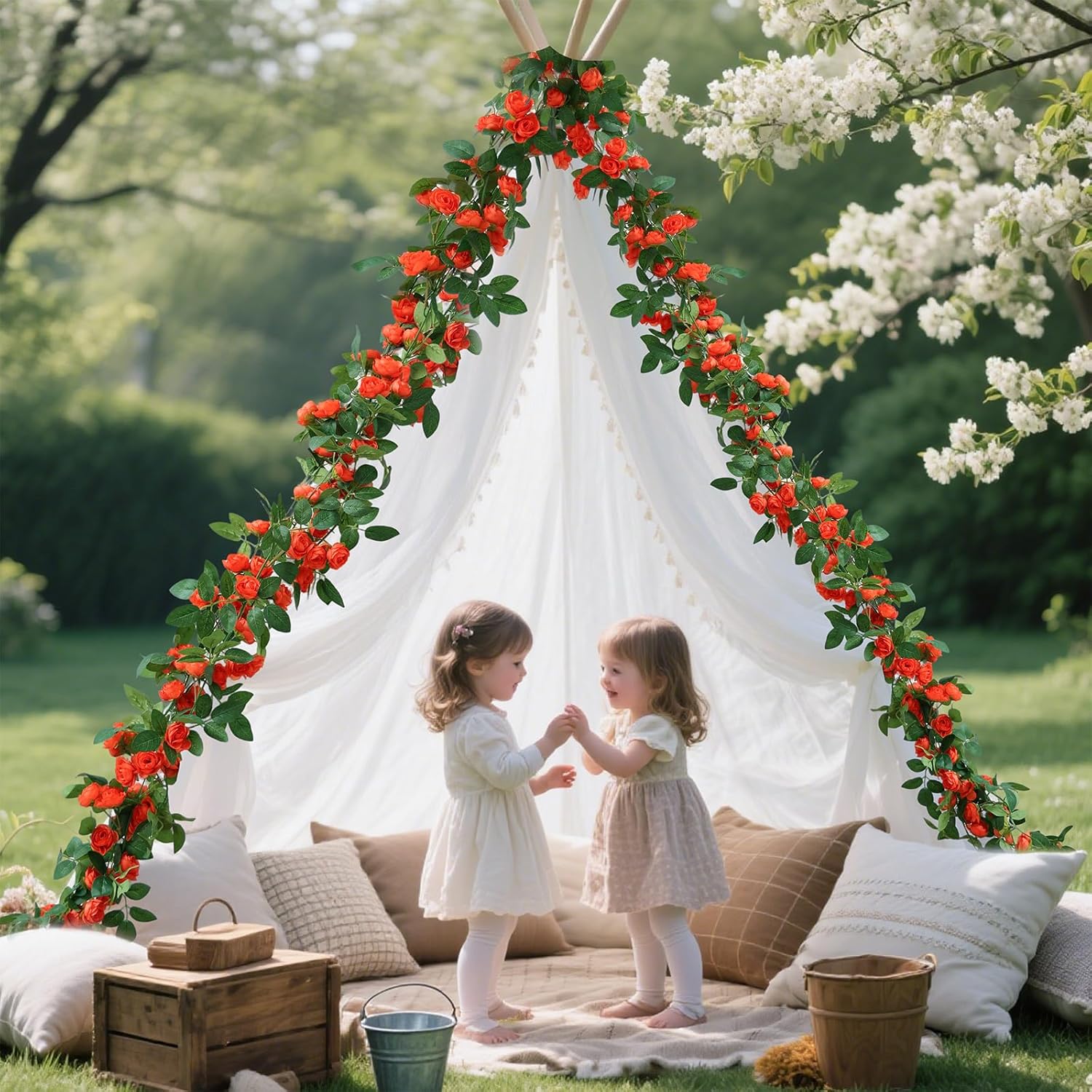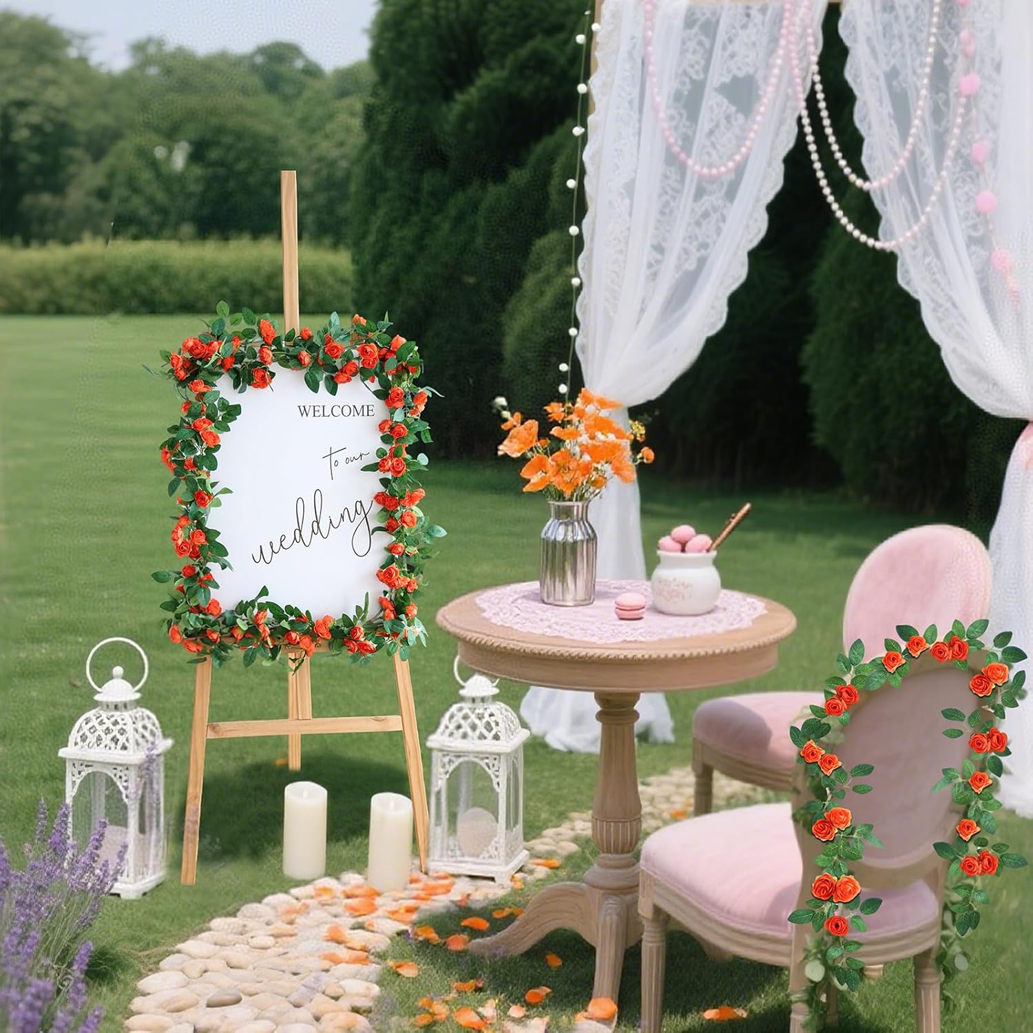 4 Packs Artificial Rose Garland: 31.48Ft Each Fake Flower Vine with Improved Color & 10 Ties for Wedding Arch Backdrop, Home Wall Party Decor, Christmas Decor, Orange
