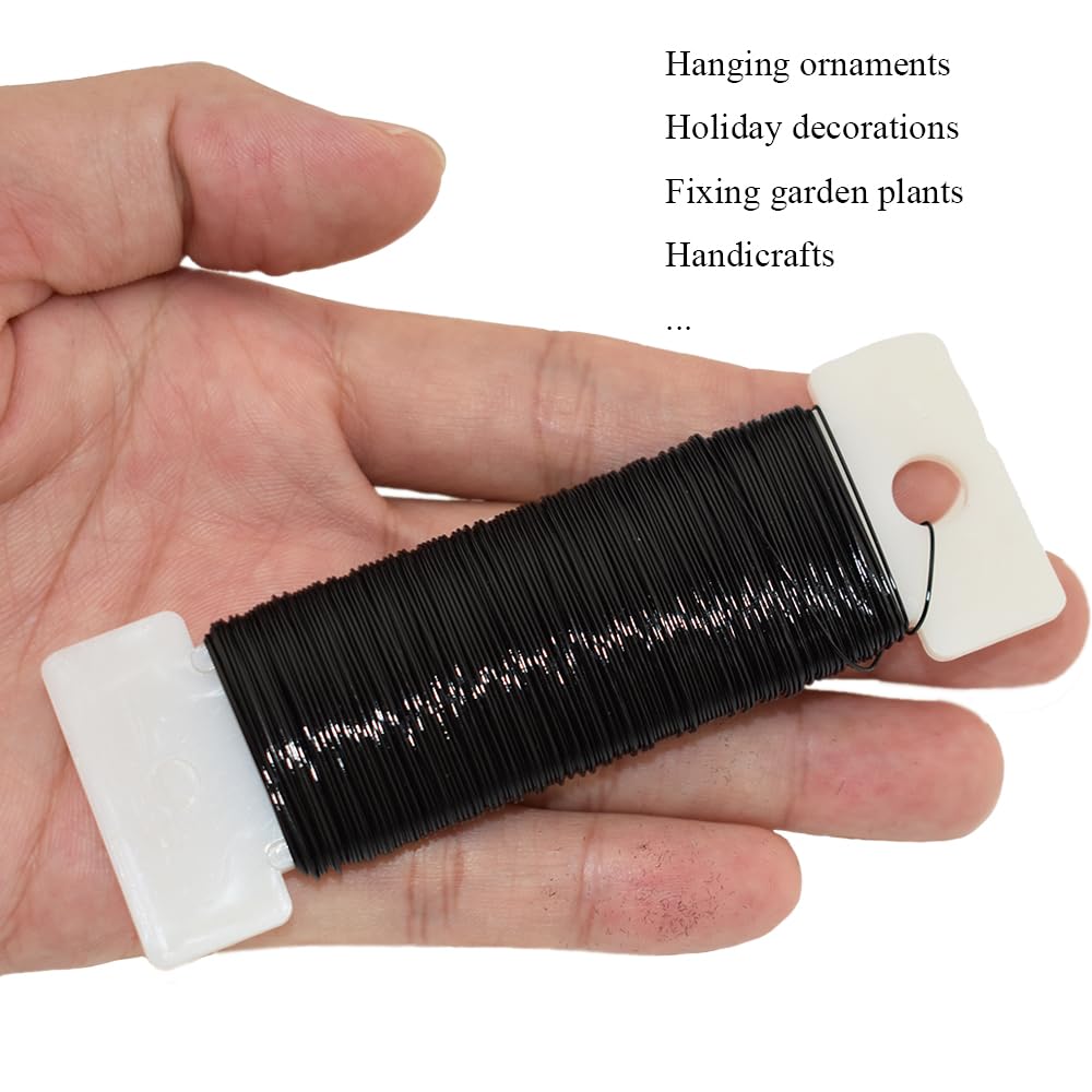 HAHIYO 26Gauge Black Metal Floral Wire - 1 Roll, 38 Yards (115 Feet) - Flexible Paddle Wire for Craft, Christmas Wreath, Flower Arrangement, Bouquet Wrapping, Wedding, DIY